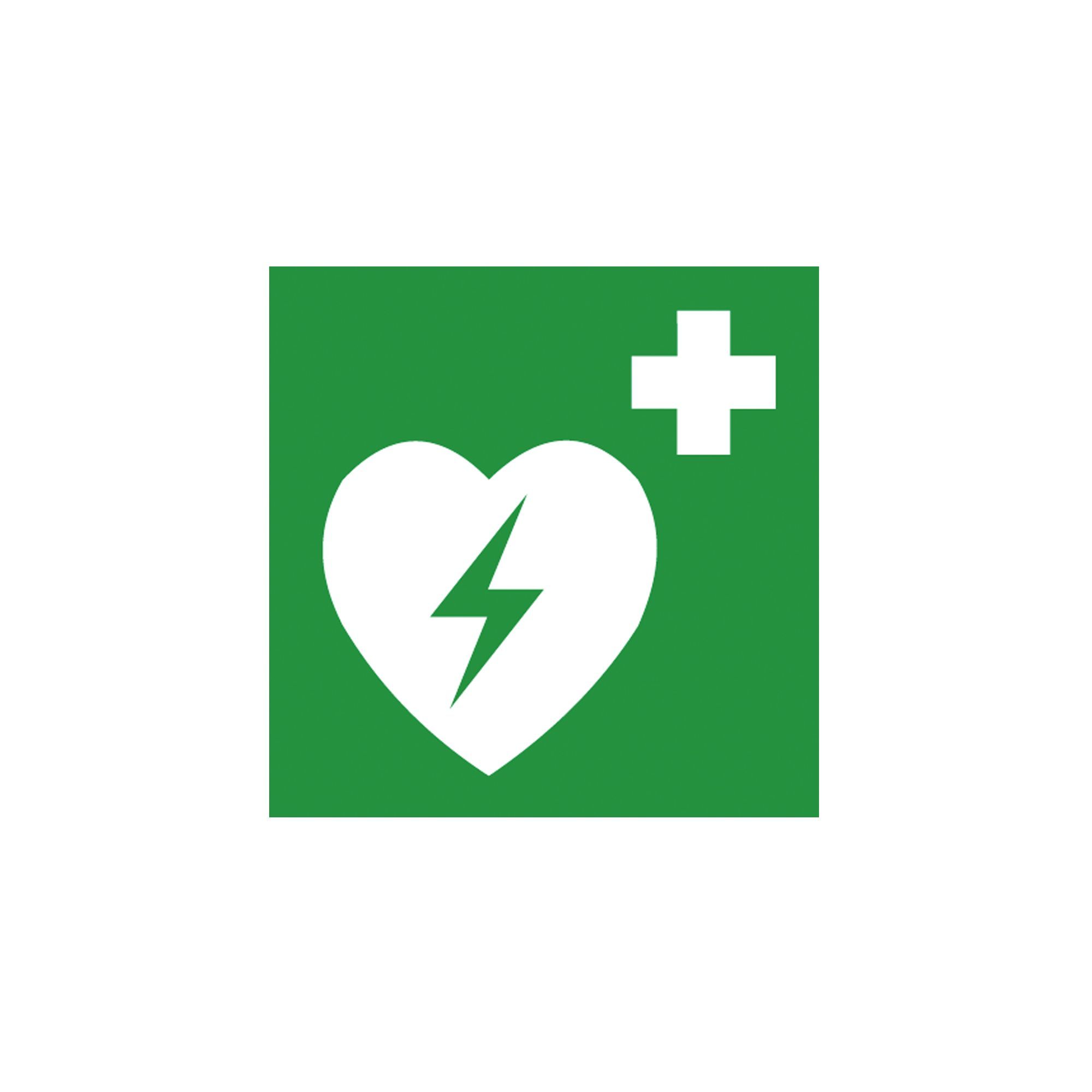 Rettungsschild als Symbol Defibrillator nach ISO 7010