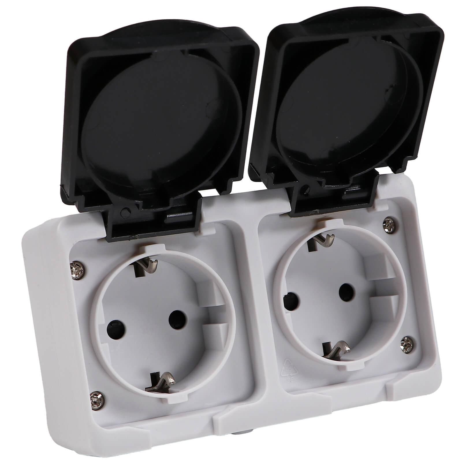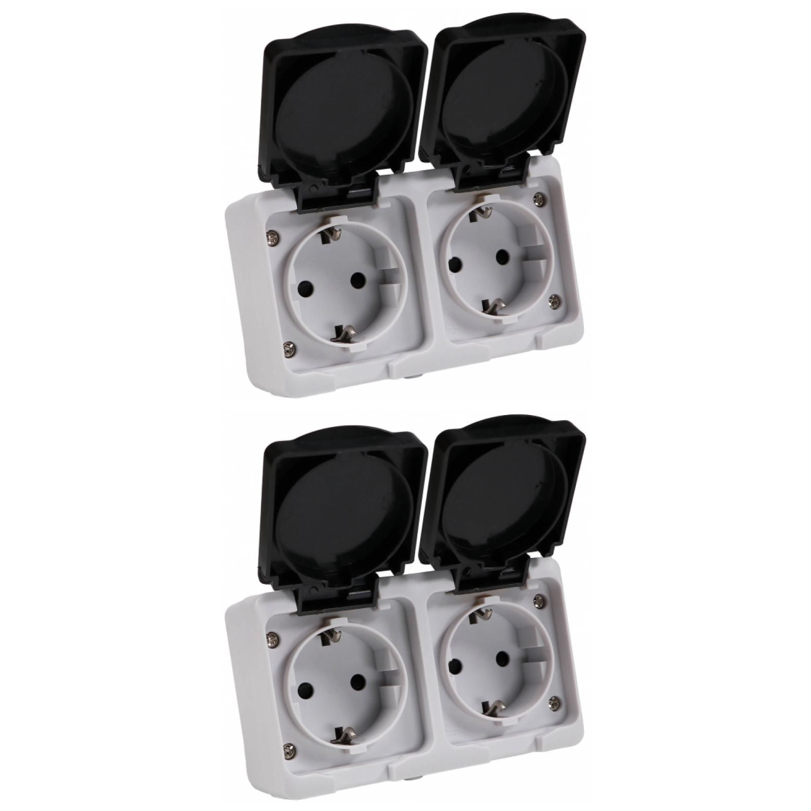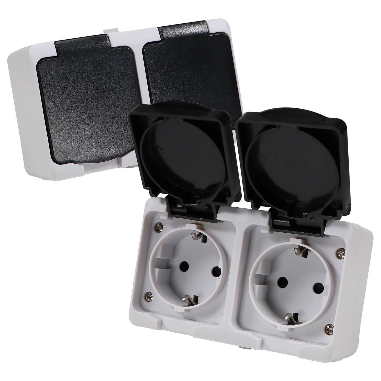 REV AquaMini Feuchtraum 2-fach Steckdose 2er Set IP54 kompakt mini Aufputz