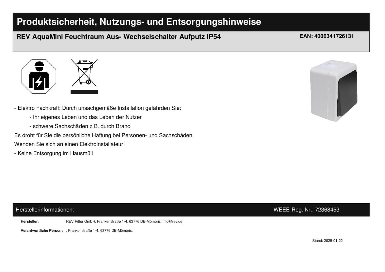 REV AquaMini Feuchtraum Aus-/Wechselschalter IP54 kompakt mini Aufputz Schalter