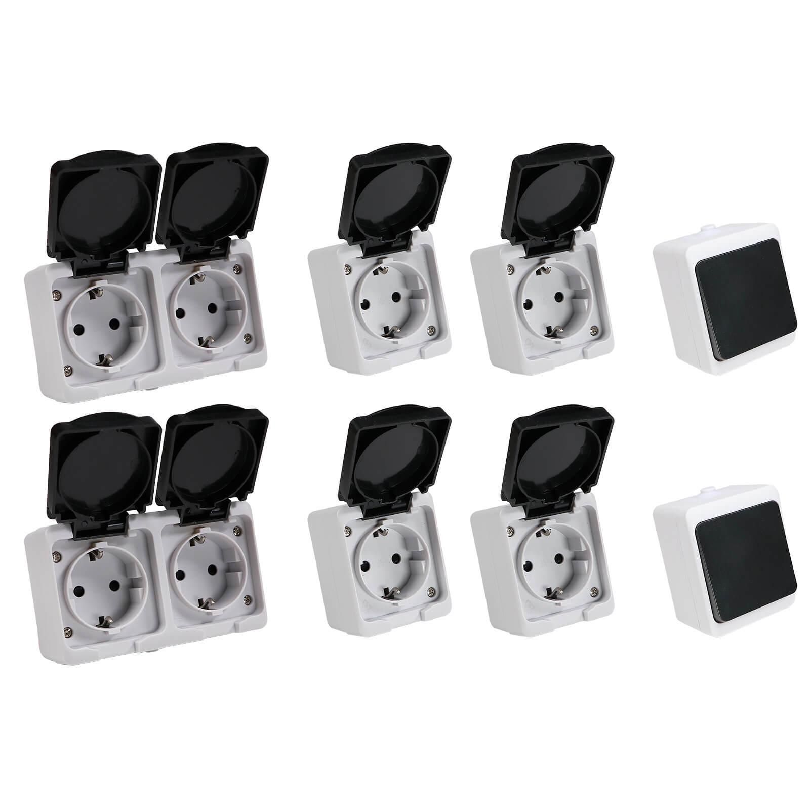 REV AquaMini Feuchtraum Set Steckdosen Aus-/Wechselschalter Aufputz IP54 8 tlg