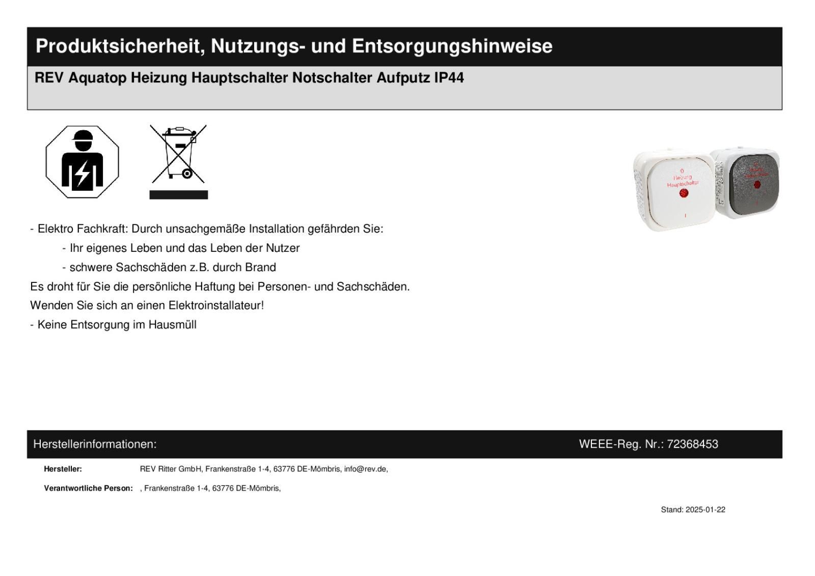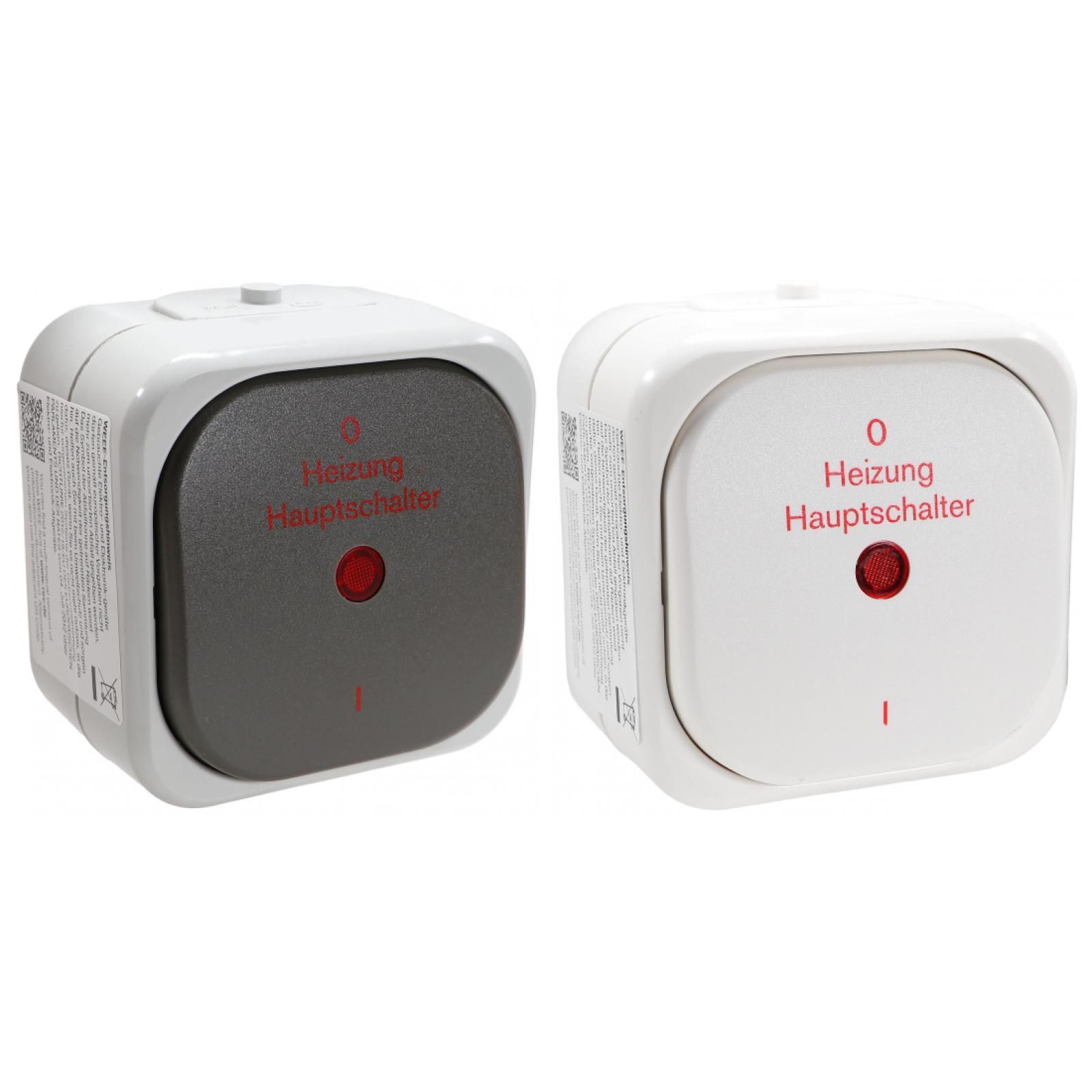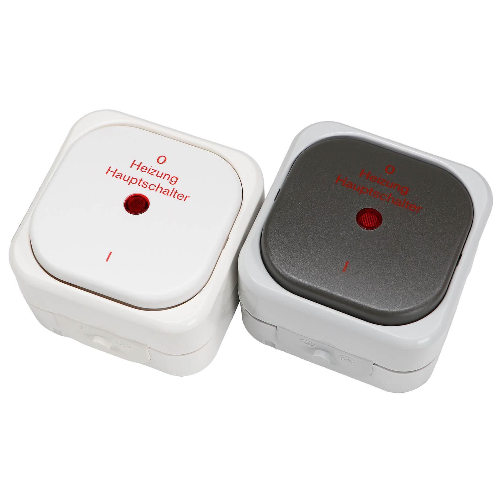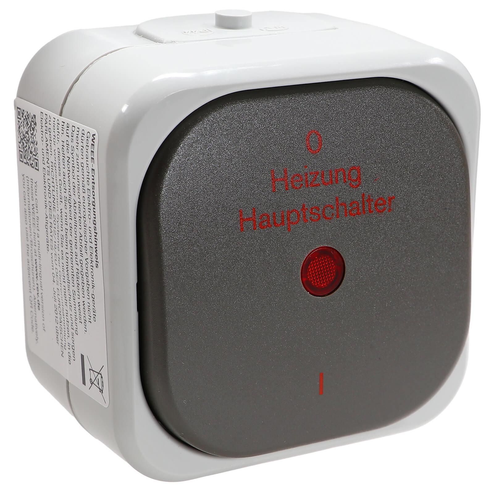 REV AquaTop Heizung Hauptschalter Feuchtraum Notschalter Aufputz IP44 grau weiss