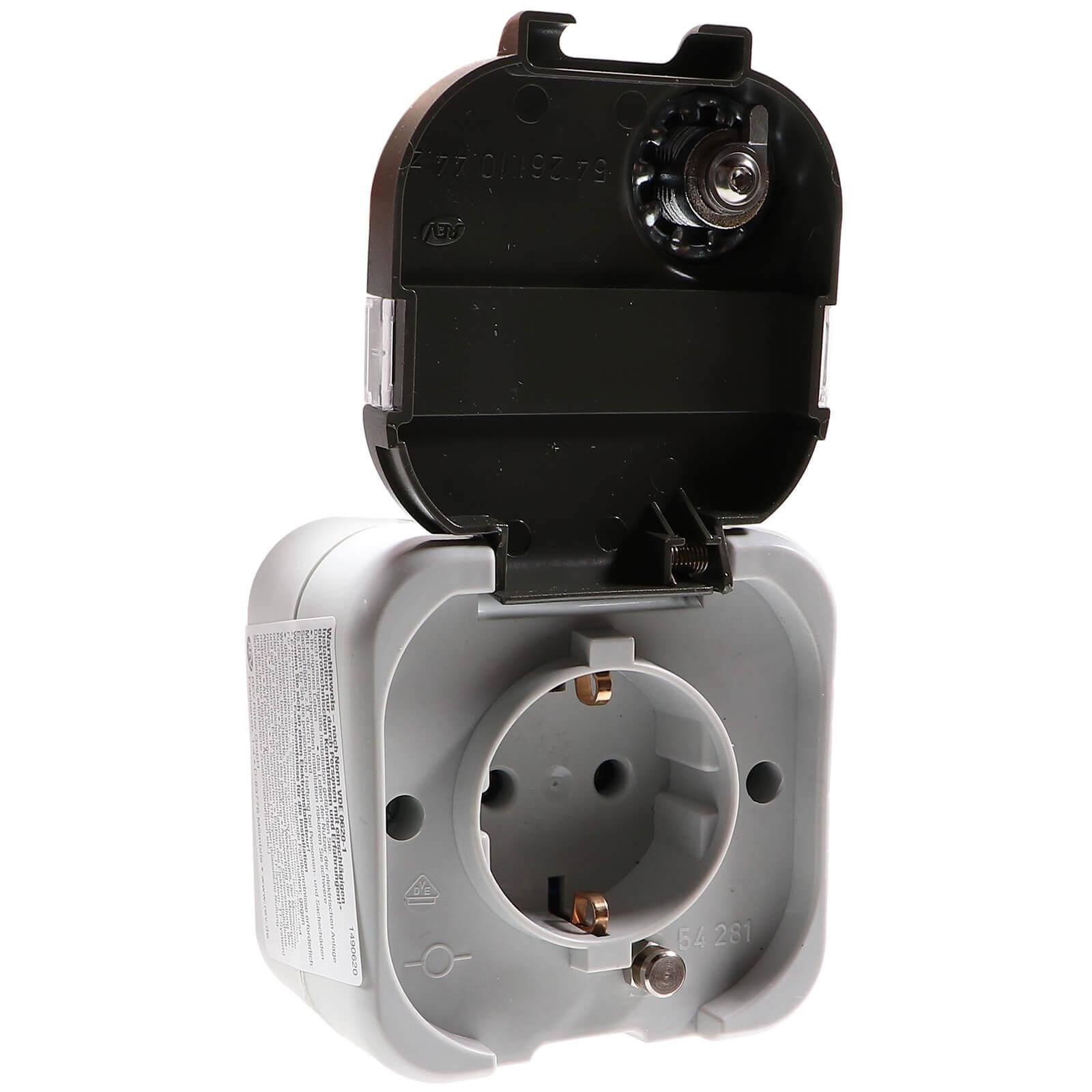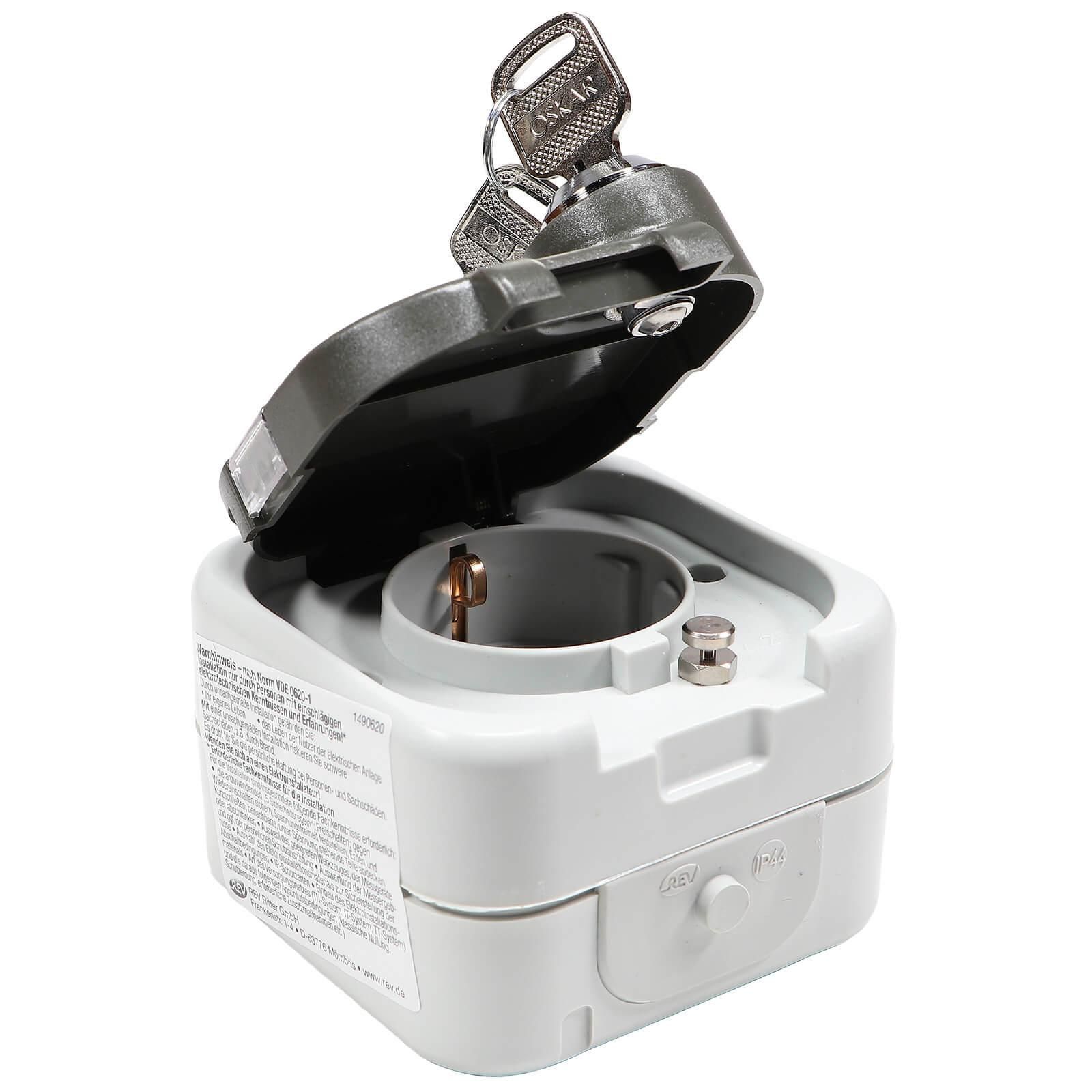 REV AquaTop Steckdose abschließbar mit Schloss Schlüssel IP44 Feuchtraum Aufputz
