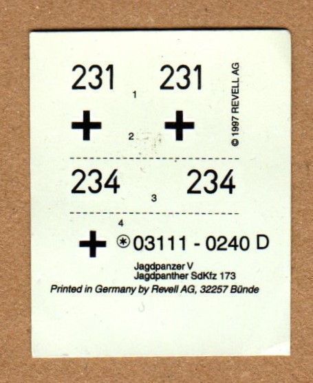 Revell Decal-Bogen Naßschiebebilder Abzeichen Für Revell Modell 03111-0240 D Jagdpanzer V Jagdpanther NEU Unbenutzt ! Für weitere Bilder oder Fragen zum Artikel kontaktieren Sie mich ! Ich nehme jederzeit realistische Preisvorschläge entgegen !