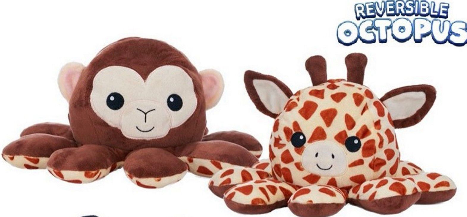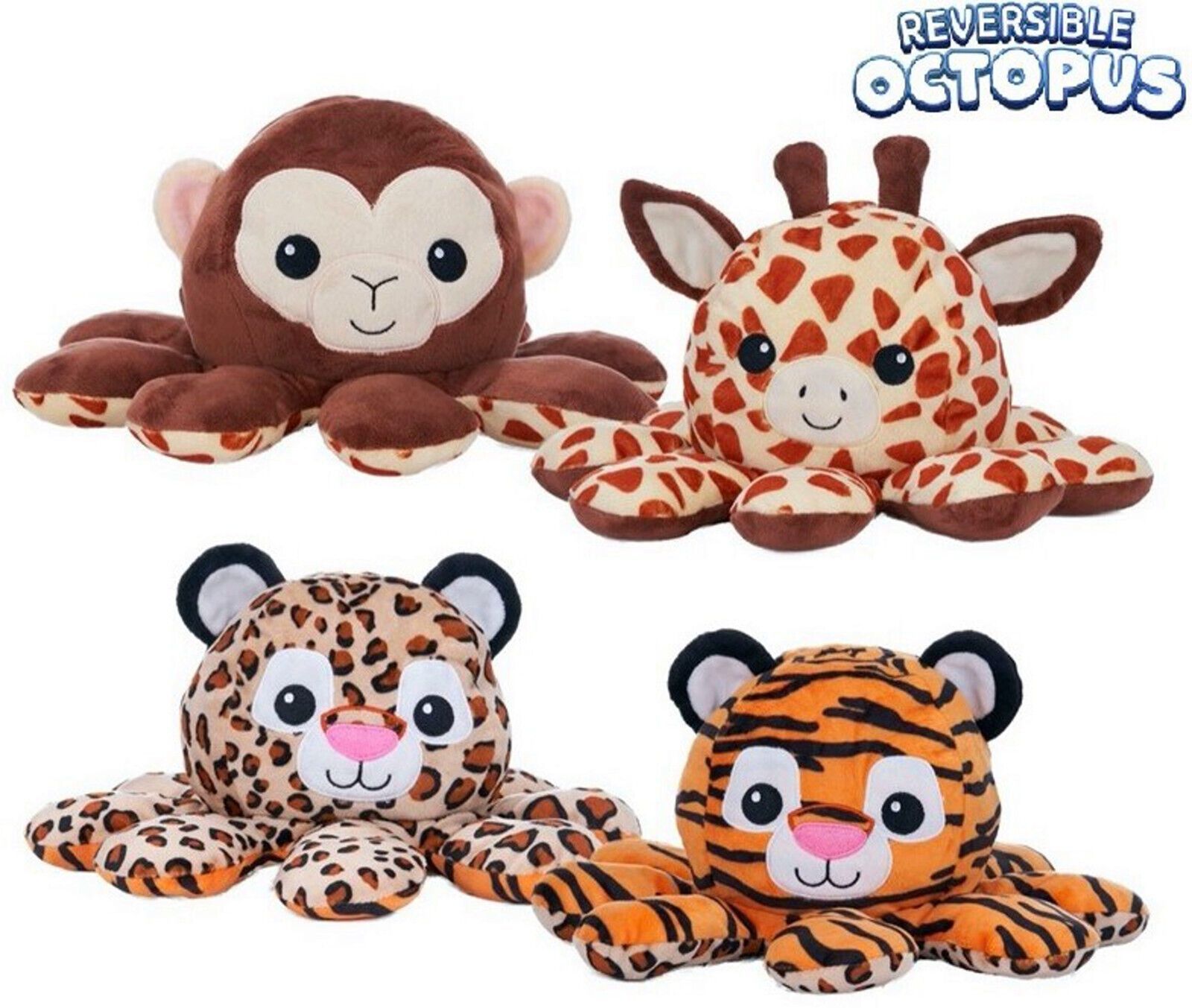 Reversible Octopus Affe-Giraffe / Tiger-Leopard Wende Plüschtier 30 cm Groß NEU