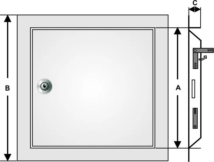Revisionsklappe Edelstahl 600 x 600 mm mit Rundzylinder-Hebelschloss + 2 Schlüssel