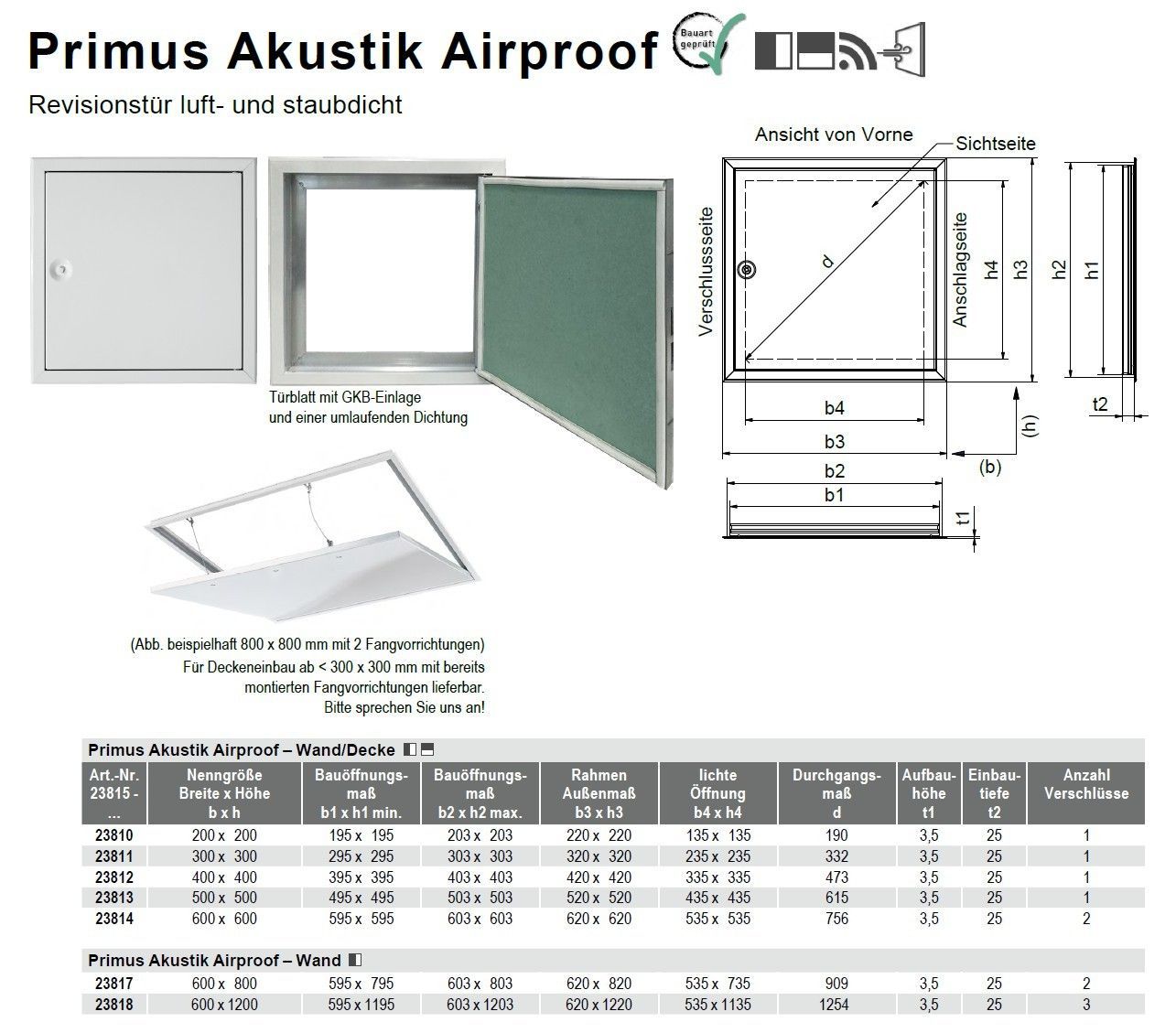 Upmann Revisionstür Primus Akustik Airproof 300x300 weiss