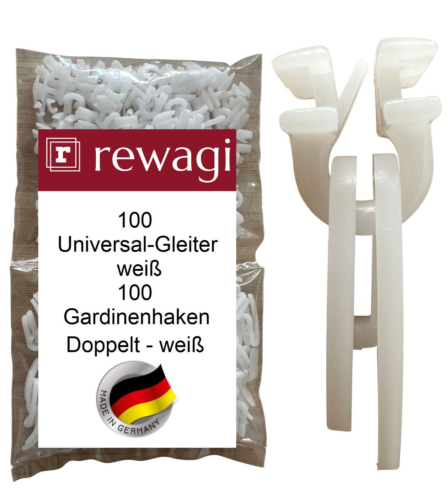 rewagi 100 Universal-Gleiter GON. 100 Gardinenhaken Doppelt weiß, Überklipshaken