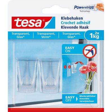 • tesa 77735-00000-00 Klebehaken, 2 Stück, für transparente Oberflächen und Glas, bis z