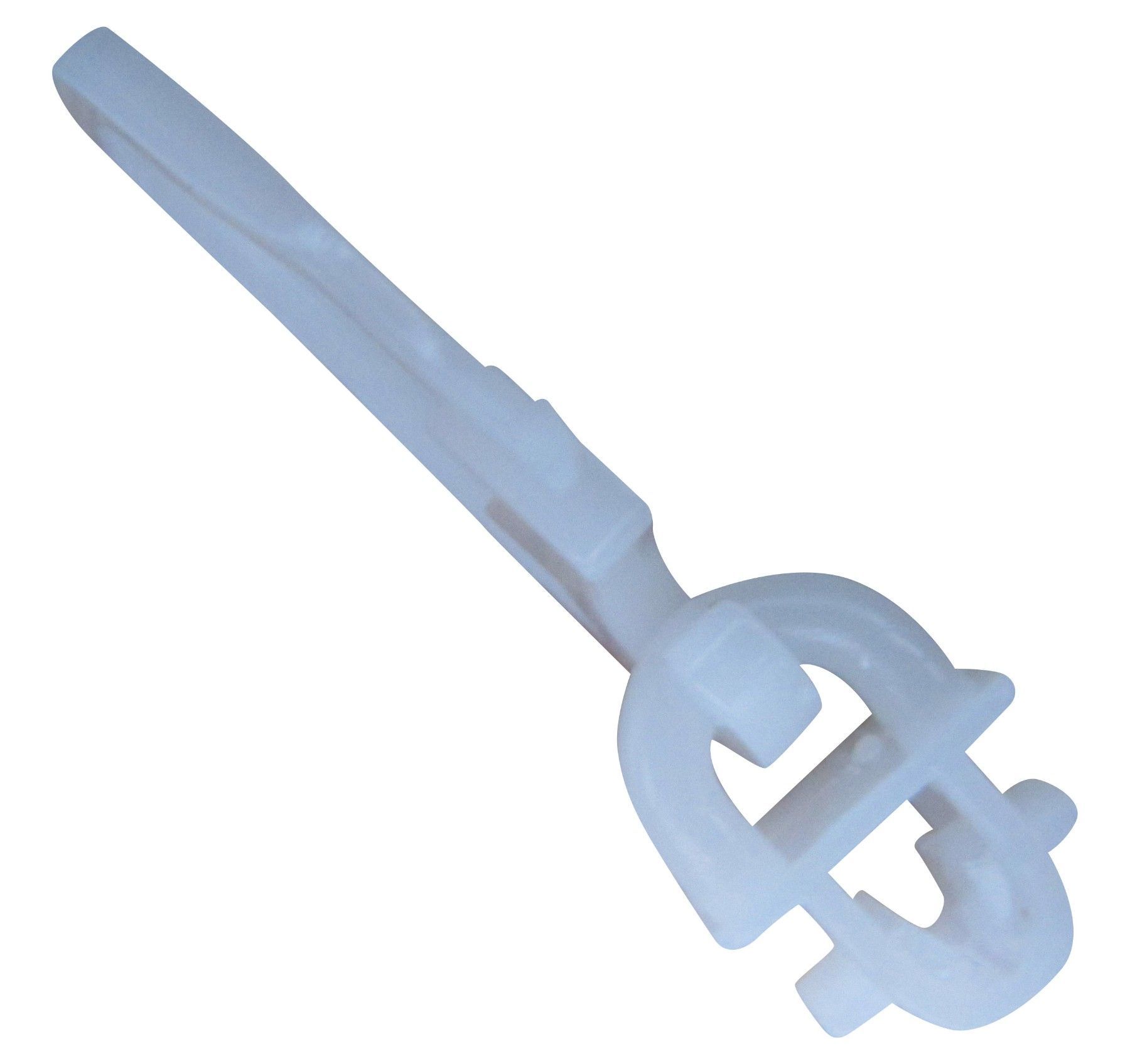 Klick fix - Faltenhaken Laufnut Spurbreite: 6.0 - 6.5mm Farbe: weiß Verkaufseinheit: 50,70,90,110,130,150,170,190,210 Stück Die Gardinengleiter in das Gardinenband anstelle der Röllchen einschlaufen, beide Enden und die Mitte der Gardine in die Schiene klicken, schon hängt das ganze Gewicht an der S