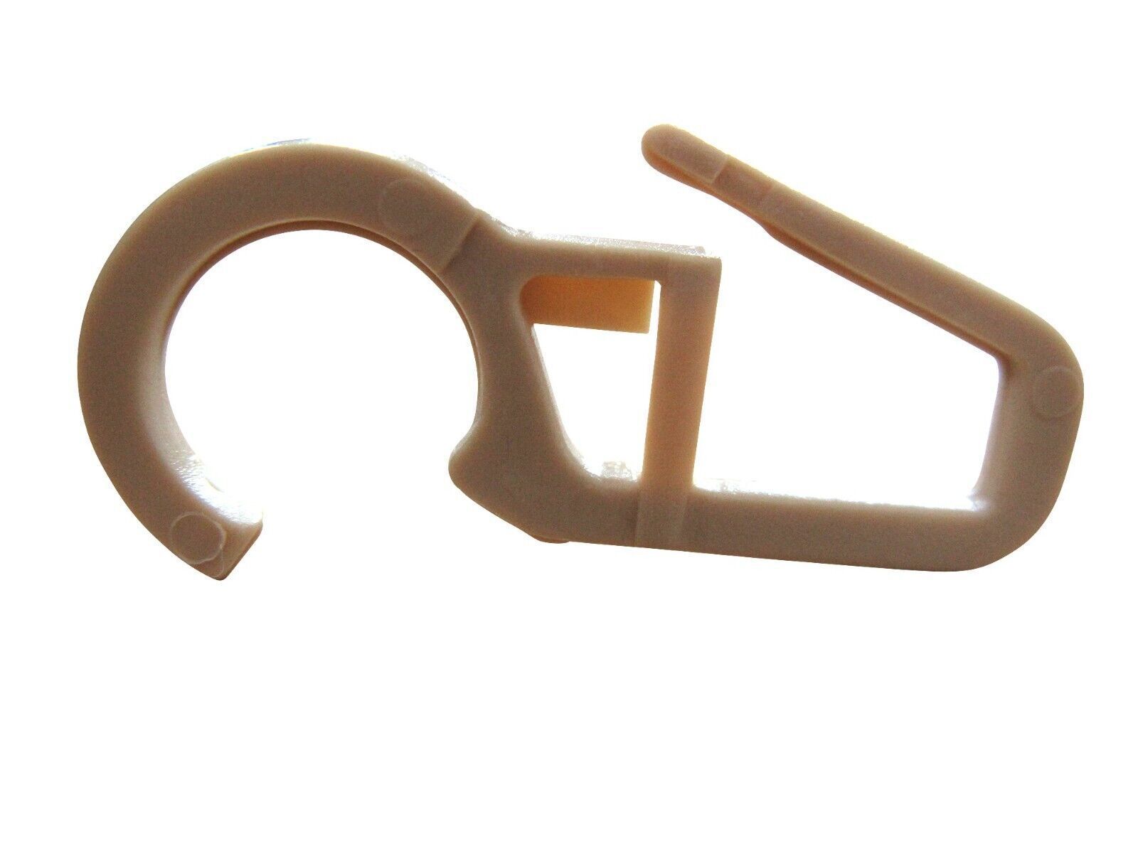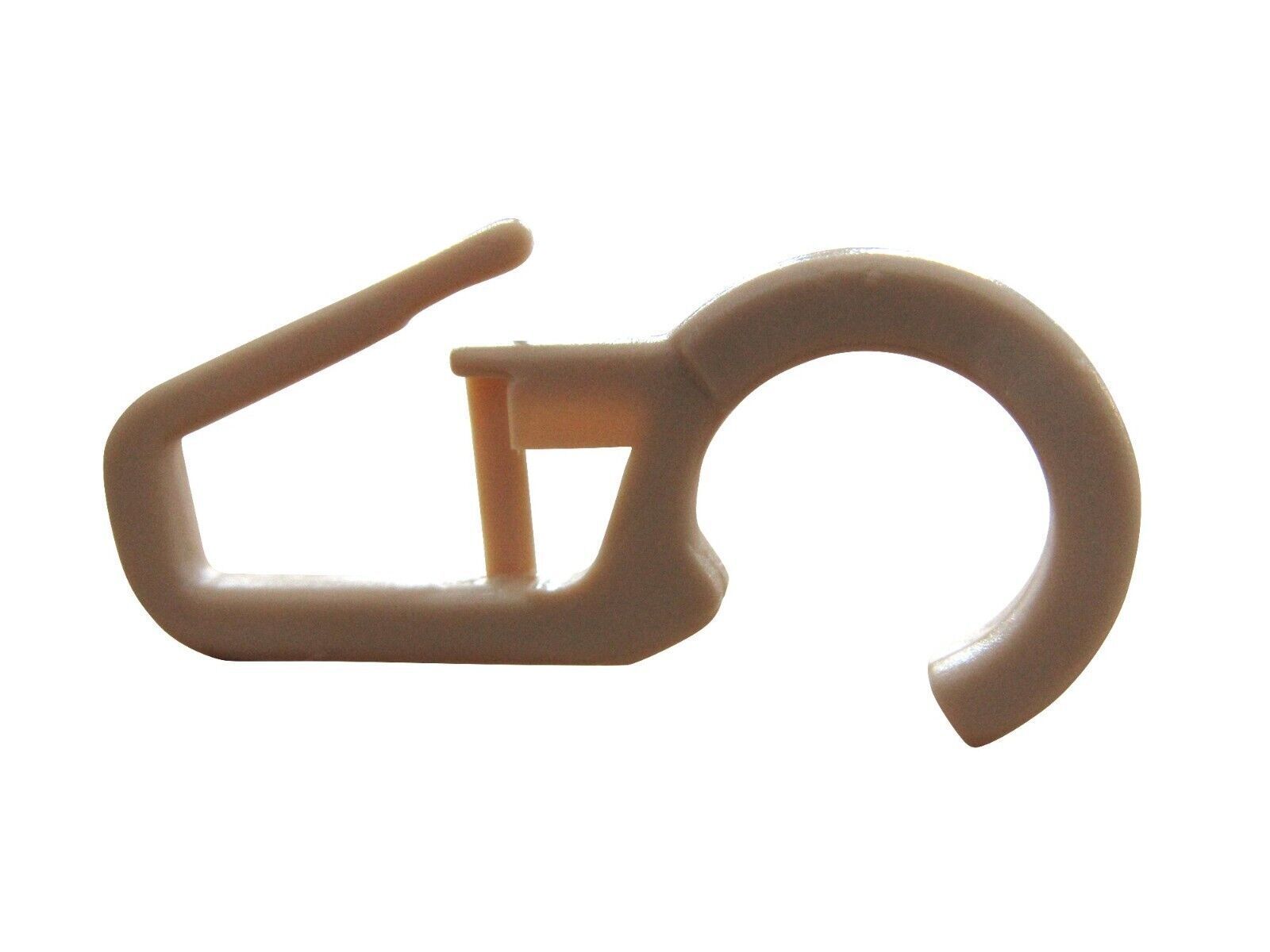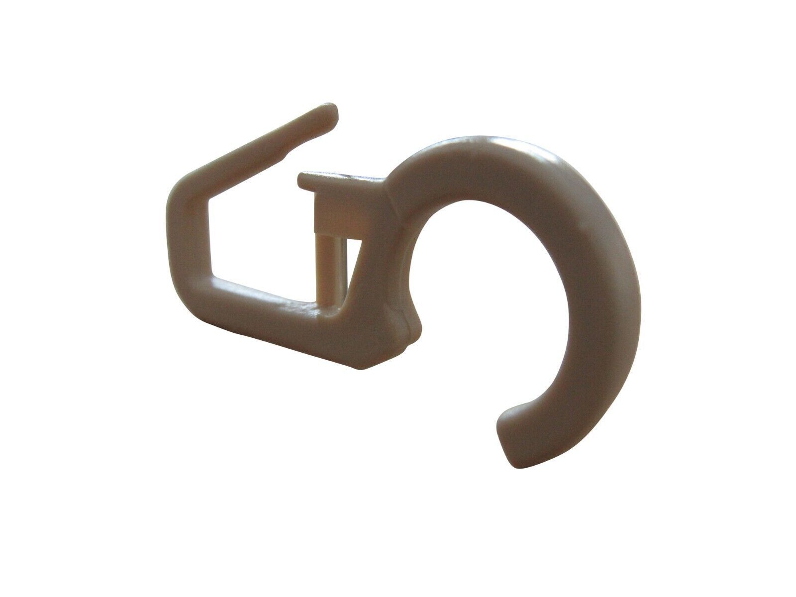 Überklipshaken mit Ø 12 mm Öse Farbe: beige Kategorie: Zubehör für Vorhänge Material: Kunststoff Länge: 37 mm Breite : 17 mm Made in Germany Verkaufseinheit: 25, 50,100, 200, 500,1000 Stück Unsere Gardinenhaken werden aus einem hochwertigen, besonders gleitfähigem Kunststoff - Material herges
