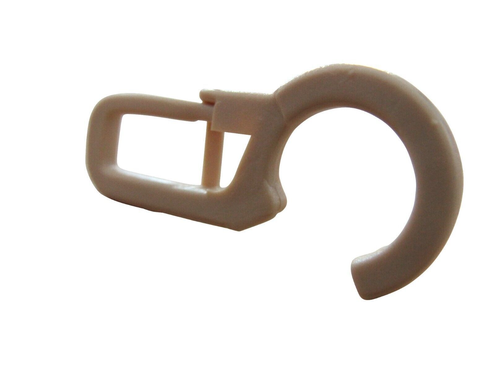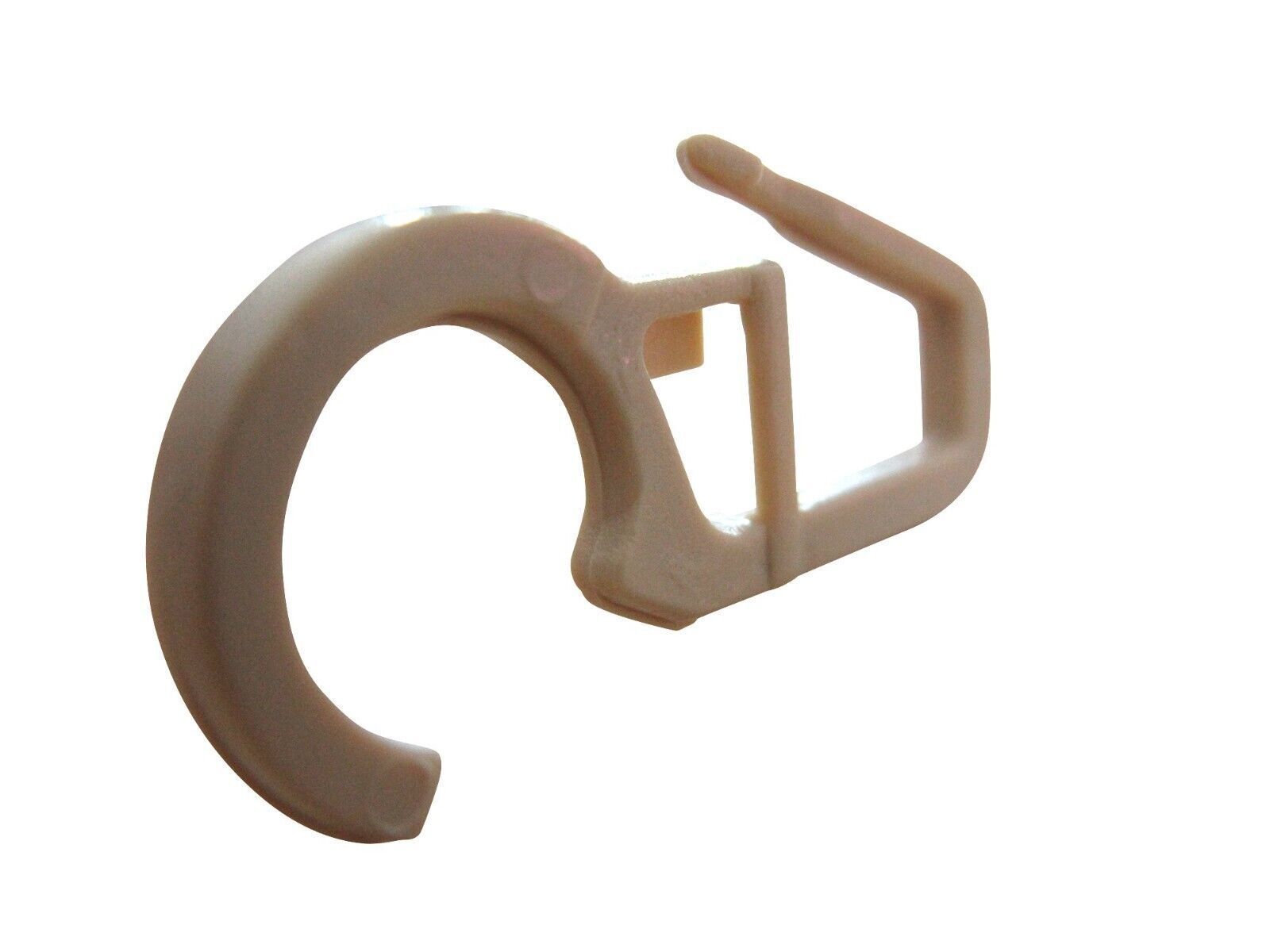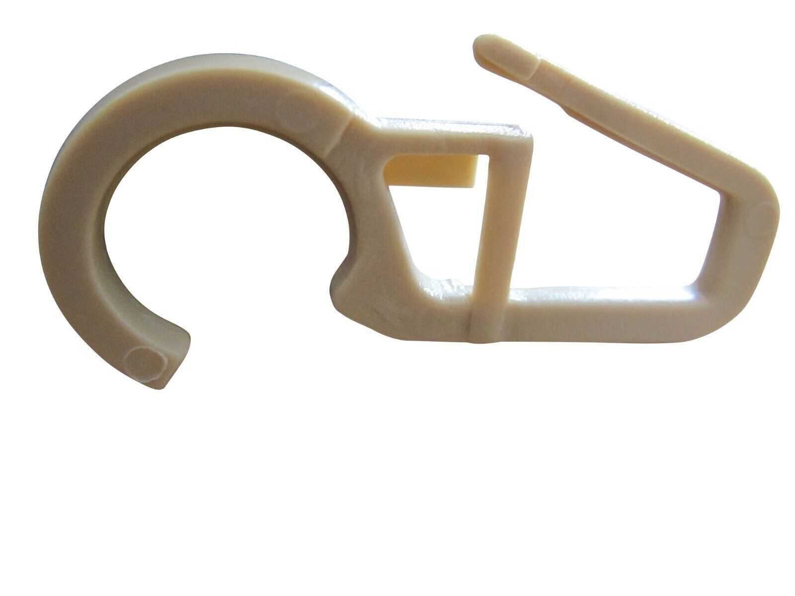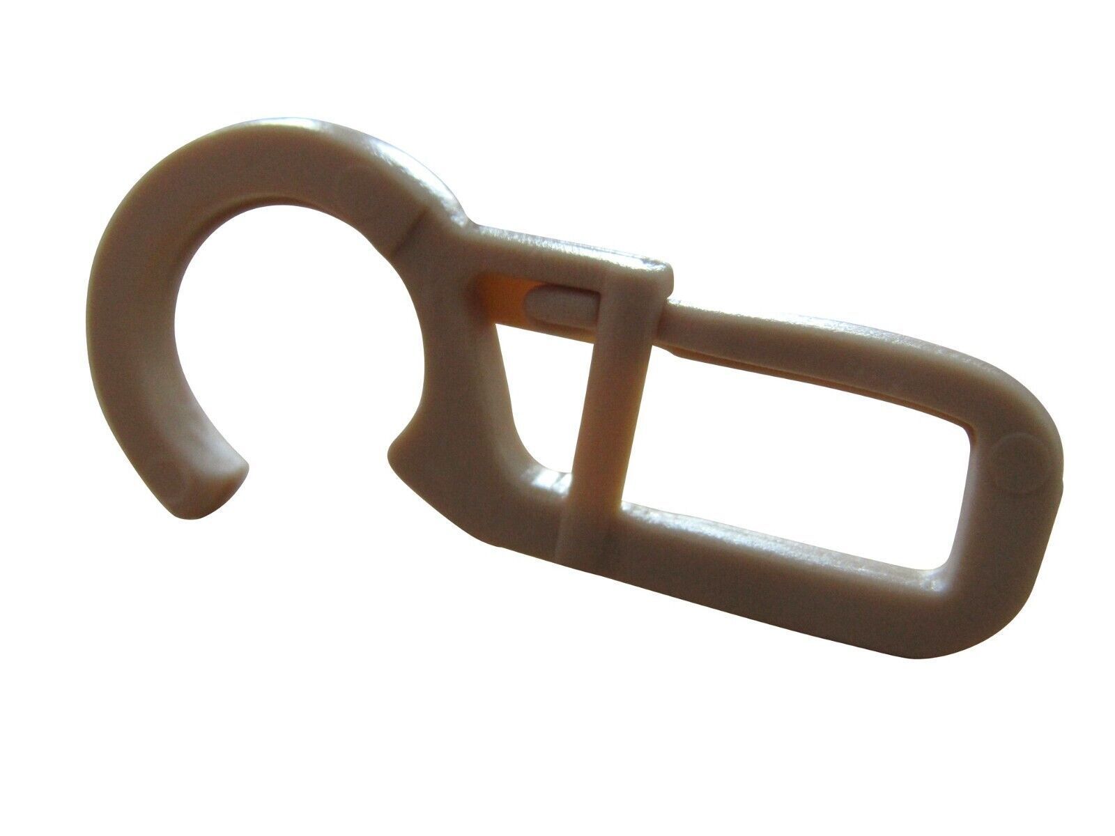Überklipshaken mit Ø 12 mm Öse Farbe: beige Kategorie: Zubehör für Vorhänge Material: Kunststoff Länge: 37 mm Breite : 17 mm Made in Germany Verkaufseinheit: 25, 50,100, 200, 500,1000 Stück Unsere Gardinenhaken werden aus einem hochwertigen, besonders gleitfähigem Kunststoff - Material herges