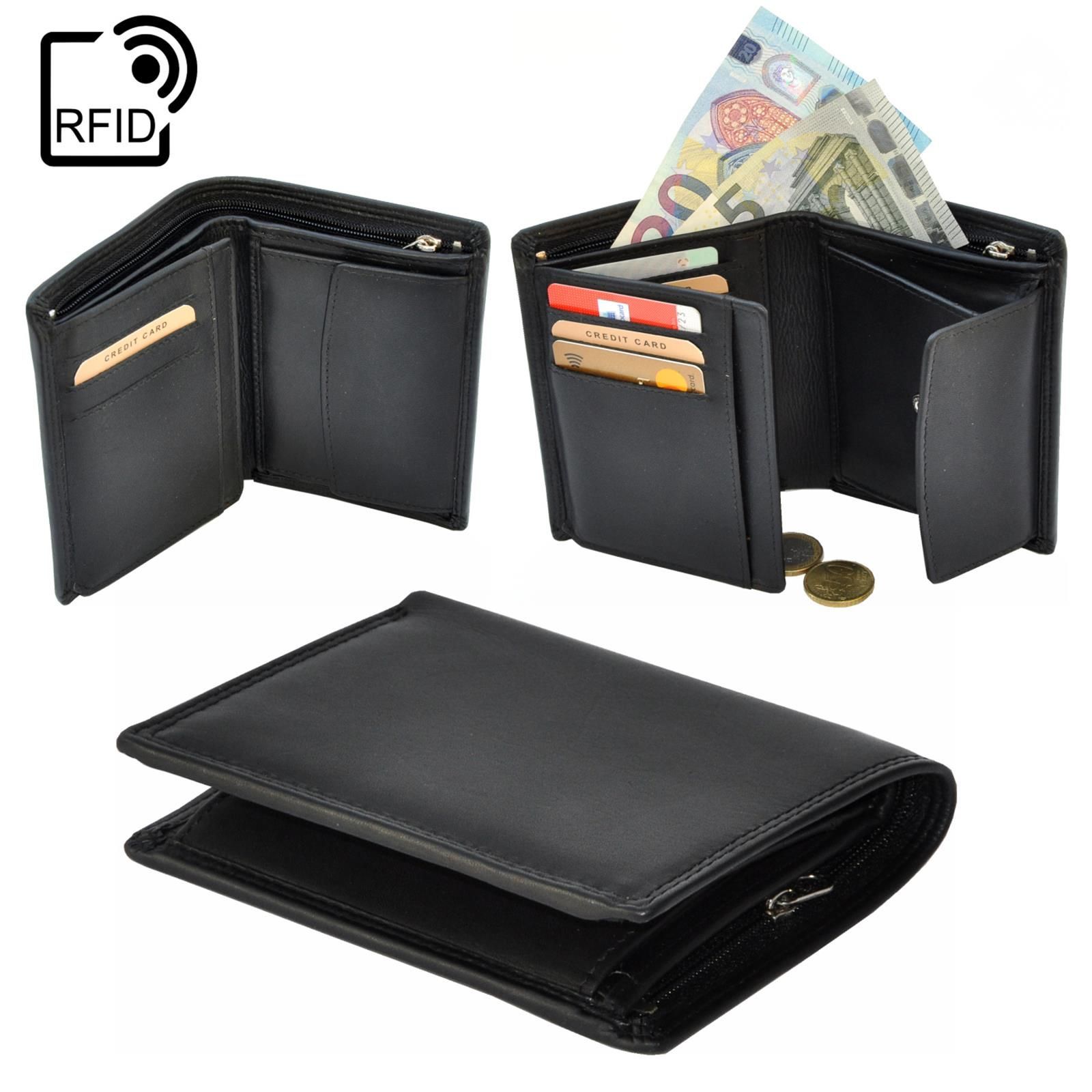 RFID Portemonnaie Geldbörse Geldbeutel Herren Querformat Schwarz Leder
