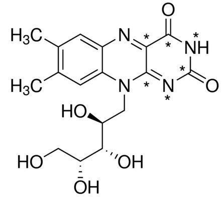 Riboflavin (Vitamin B2) (97-103%, Ph. Eur., Food Grade) S100482_Master Andere Namen: Vitamin B2, Lactoflavin, E101, Vitamin G (veraltet), 7,8-Dimethyl-10-(D-ribo-2,3,4,5-tetrahydroxypentyl)-3H,10H-benzo(g)pteridin-2,4-dion, 7,8-Dimethyl-10-(D-ribit-1-yl)-isoalloxazin Summenformel: C 17 H 20 N 4 O 6 ... Mehr