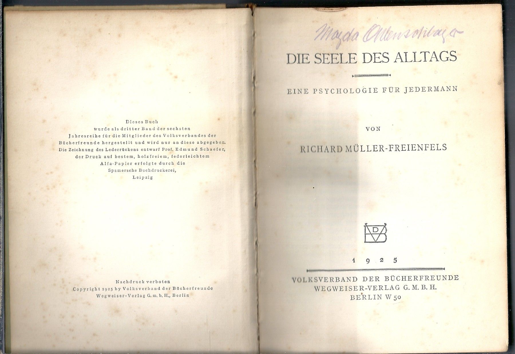 Richard Müller-Freienfels Die Seele des Alltags (1925) Volksverband der Bücherfreunde