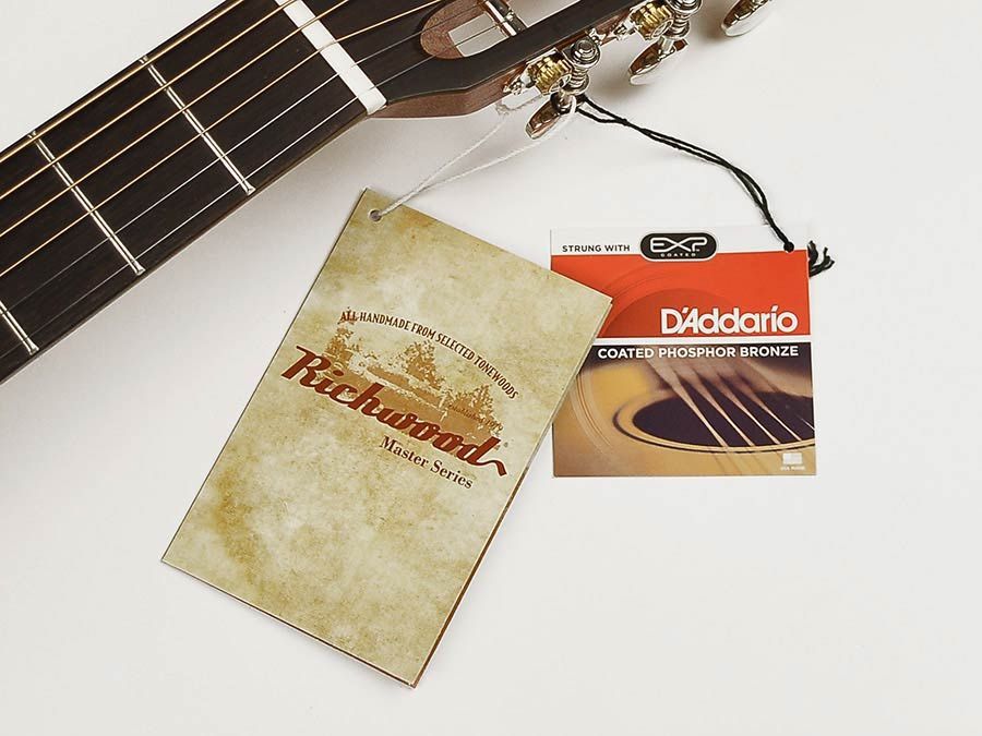 Richwood P 65 Palor Master Series Vintage Aged Natural Handgefertigtes Palor Modell Decke: Fichte A- Sortierung, massiv Boden und Zargen: Palisander Hals: Mahagoni, Satin Finish Griffbrett: Palisander Mensur: 62,8 cm ( 24,7' ) Sattelbreite: 46 mm Bünde: 18 Sattel und Stegeinlage: Knochen Steg: Palis