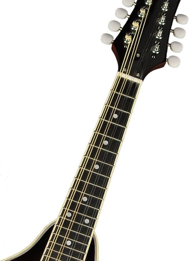 Richwood RMA-60-VS Mandoline Korpusform: A-Style Mandoline Decke: Fichte Boden und Zargen: Mahagoni Hals: Mahagoni Griffbrett: Technical Wood Mensur: 35 cm Sattelbreite: 28,5 mm Sattel: Knochen Steg: Walnuss 24 Bünde Mechaniken: Open-Gear mit Pearloid Mechnikknöpfen Farbe: Vintage Sunburst, hochglan