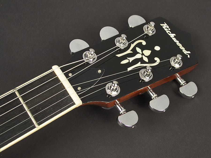 Richwood RMB-605 Banjo 6-saitig 6-saitiges Gitarren Banjo Resonator: Mahagoni Fell: Remo Weatherking White 11'' Hals: Mahagoni Griffbrett: Technical Wood Mensur: 66,4 cm ( 26,1' ) Sattelbreite: 43 mm Bünde: 22 Steg: Ahorn mit Ebenholz Oberteil Sattel: Knochen Finish: Hochglanz Mechaniken: DieCast ge