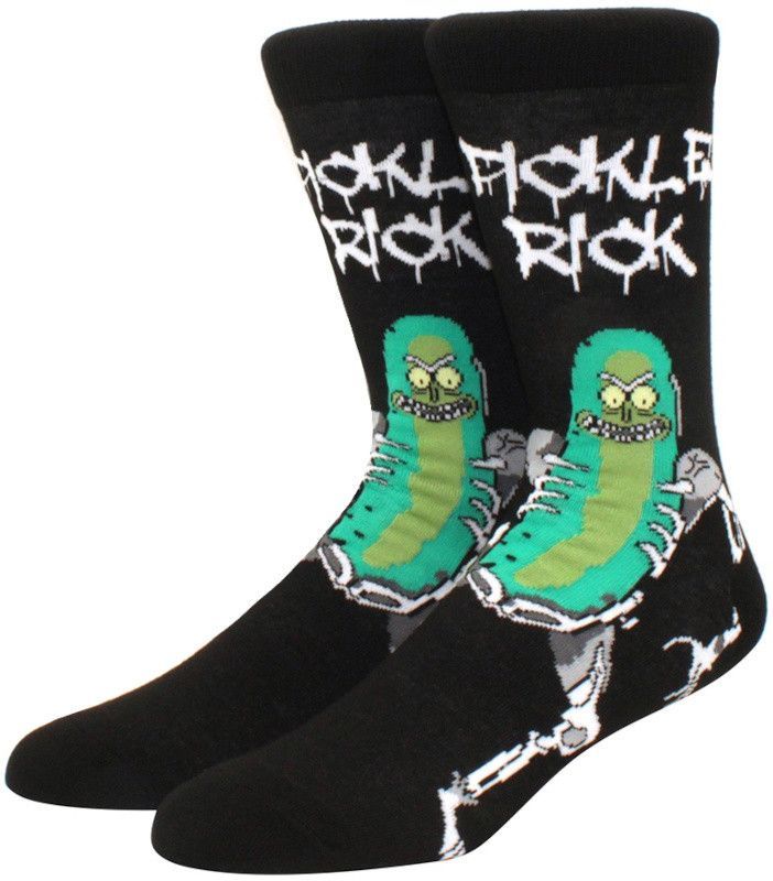 Rick & Morty Cartoon Socken - Pickle Rick 360° Motiv Lustige Heroes Socken Socks Tauche ein in die verrückte Welt von Rick & Morty mit diesen einzigartigen Pickle Rick Socken, die ein lustiges 360° Motiv des beliebten Charakters präsentieren. Diese Socken sind ein Muss für alle Fans der Serie und bringen einen Hauch von Humor und Abenteuer in deinen Alltag.