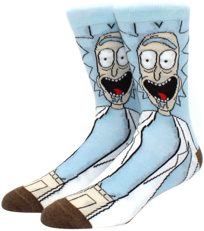 Rick & Morty Cartoon Socken - Ricky Happy Faces 360° Motiv Rick Lustige Heroes Socken Erlebe die Freude und den Humor von Rick Sanchez aus Rick & Morty mit diesen Ricky Happy Faces Socken. Das 360° Motiv zeigt eine Vielzahl von glücklichen Gesichtsausdrücken von Rick, die jeden Fan zum Lächeln bringen werden.