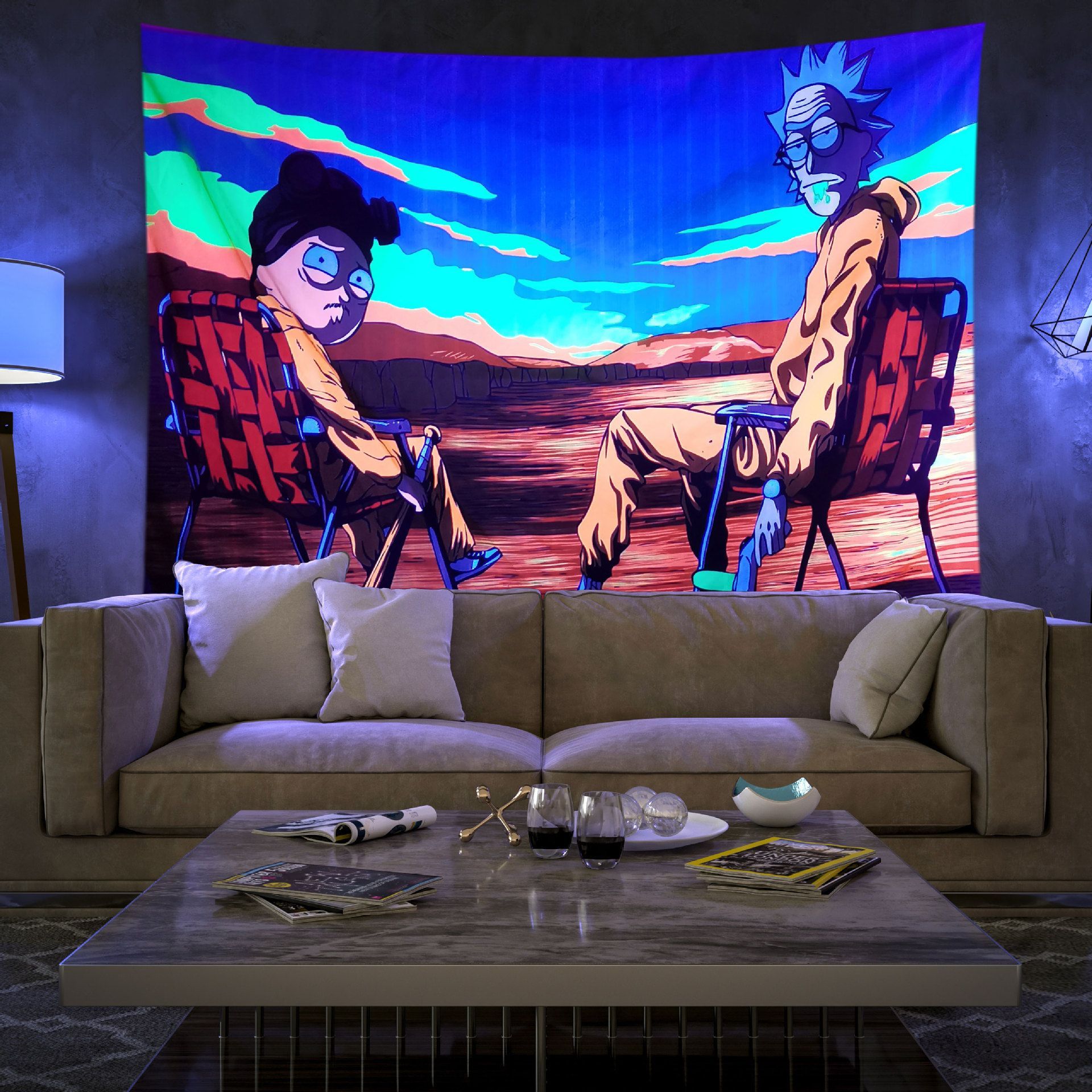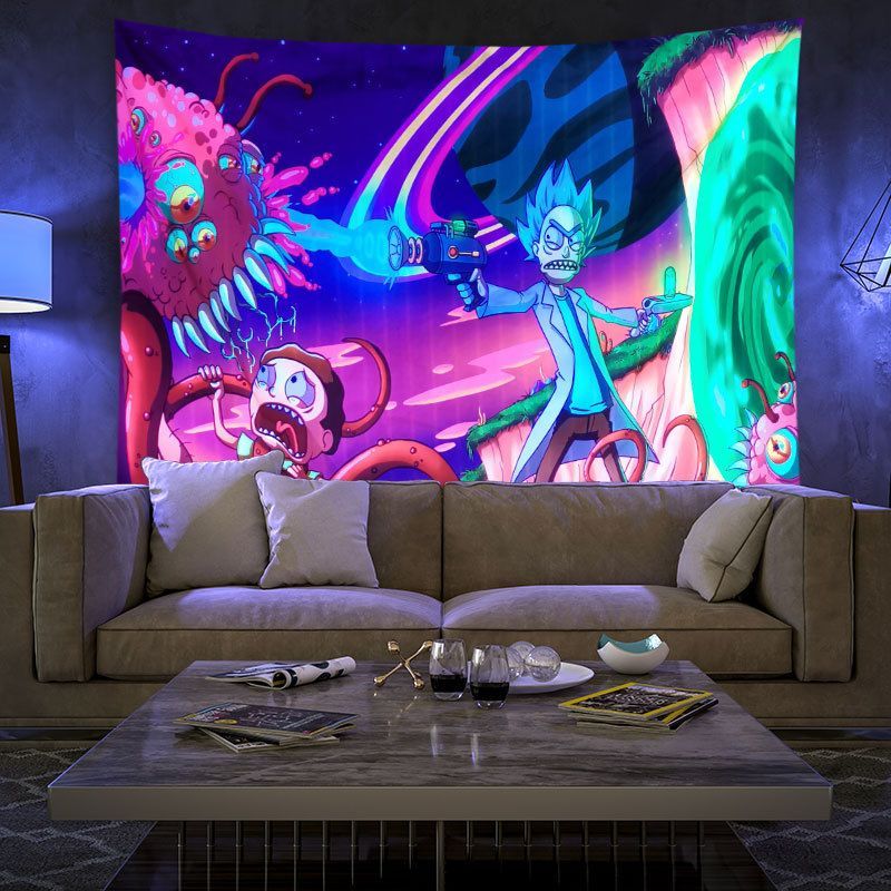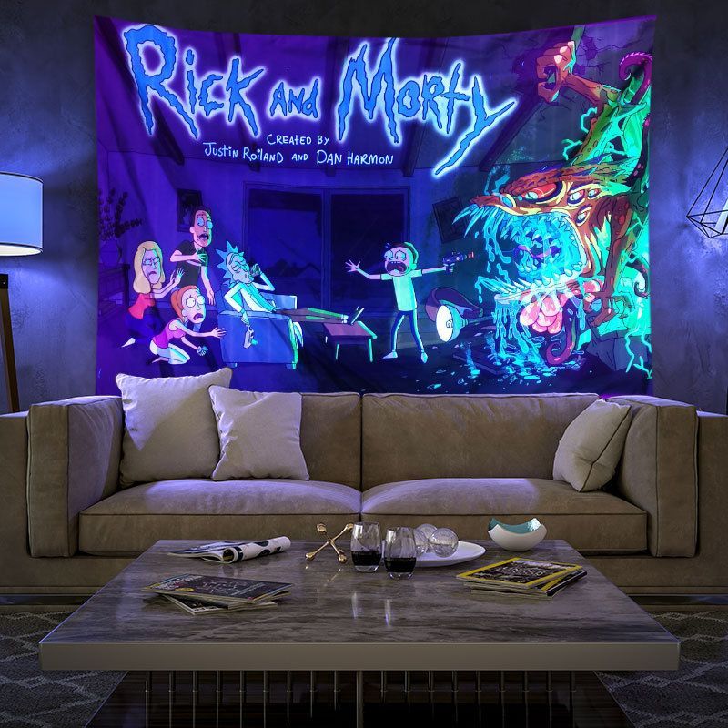 Rick Morty Fluoreszenz Tapestry Wandbehänge Kinder Foto Requisiten Hintergrund Tuch