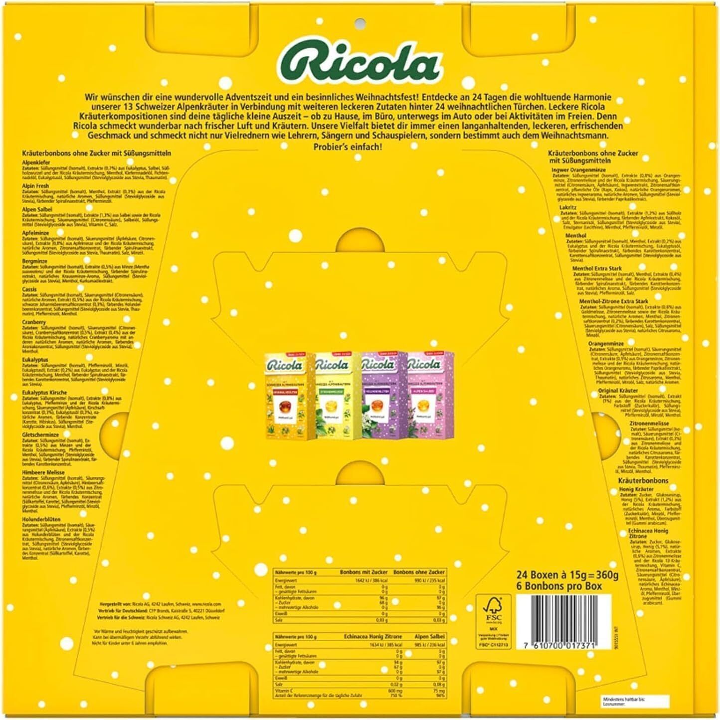 Ricola Bonbons Süßigkeiten Candy Advents­kalender 2024, 24 Fenster, Süß Kalender