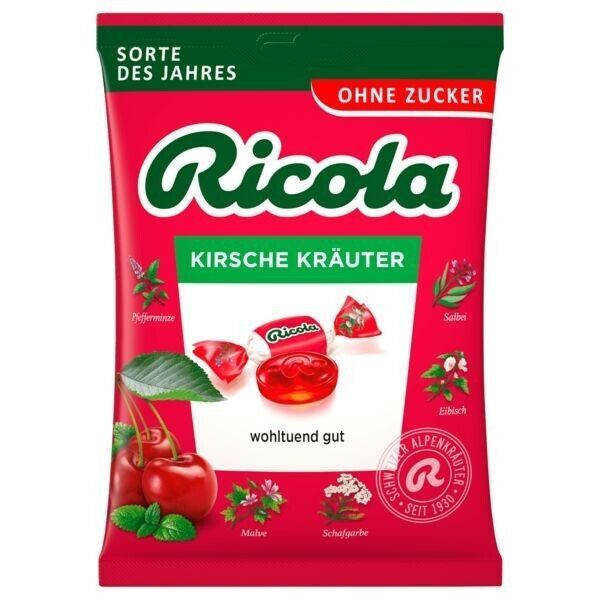 Ricola Kirsche Kräuter Bonbons ohne Zucker 18x75 g Beutel