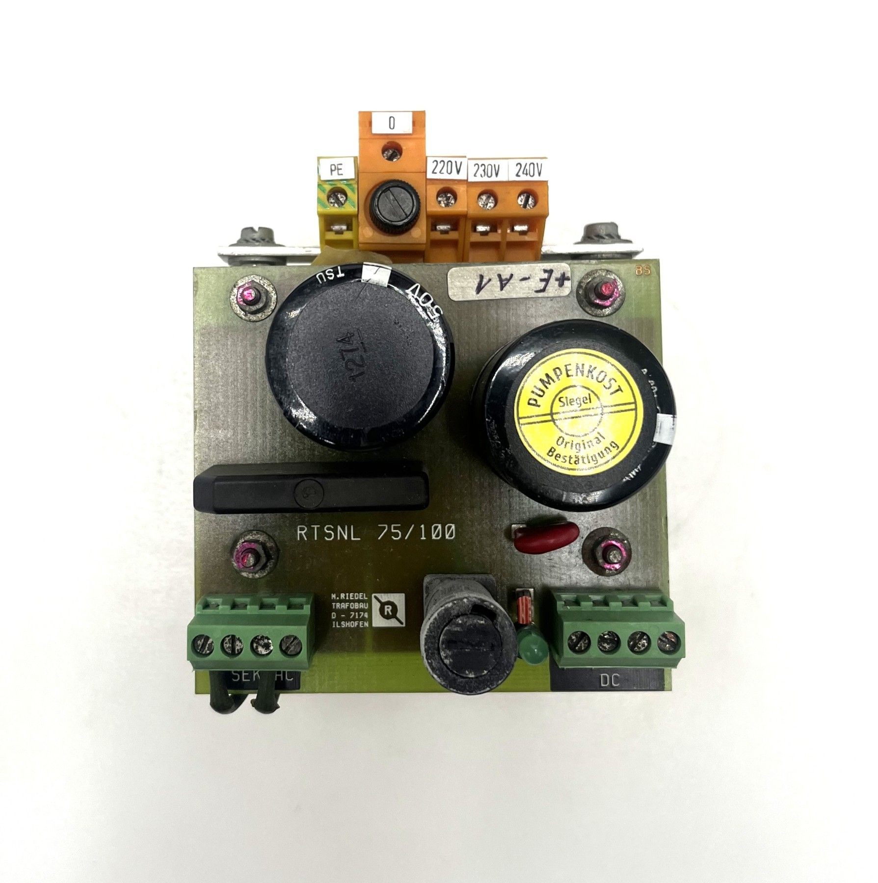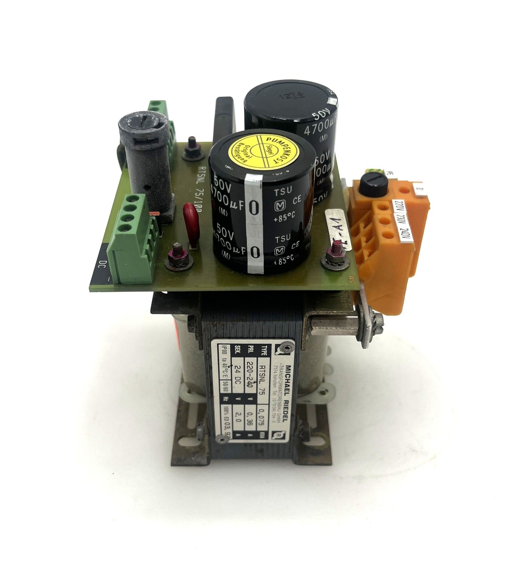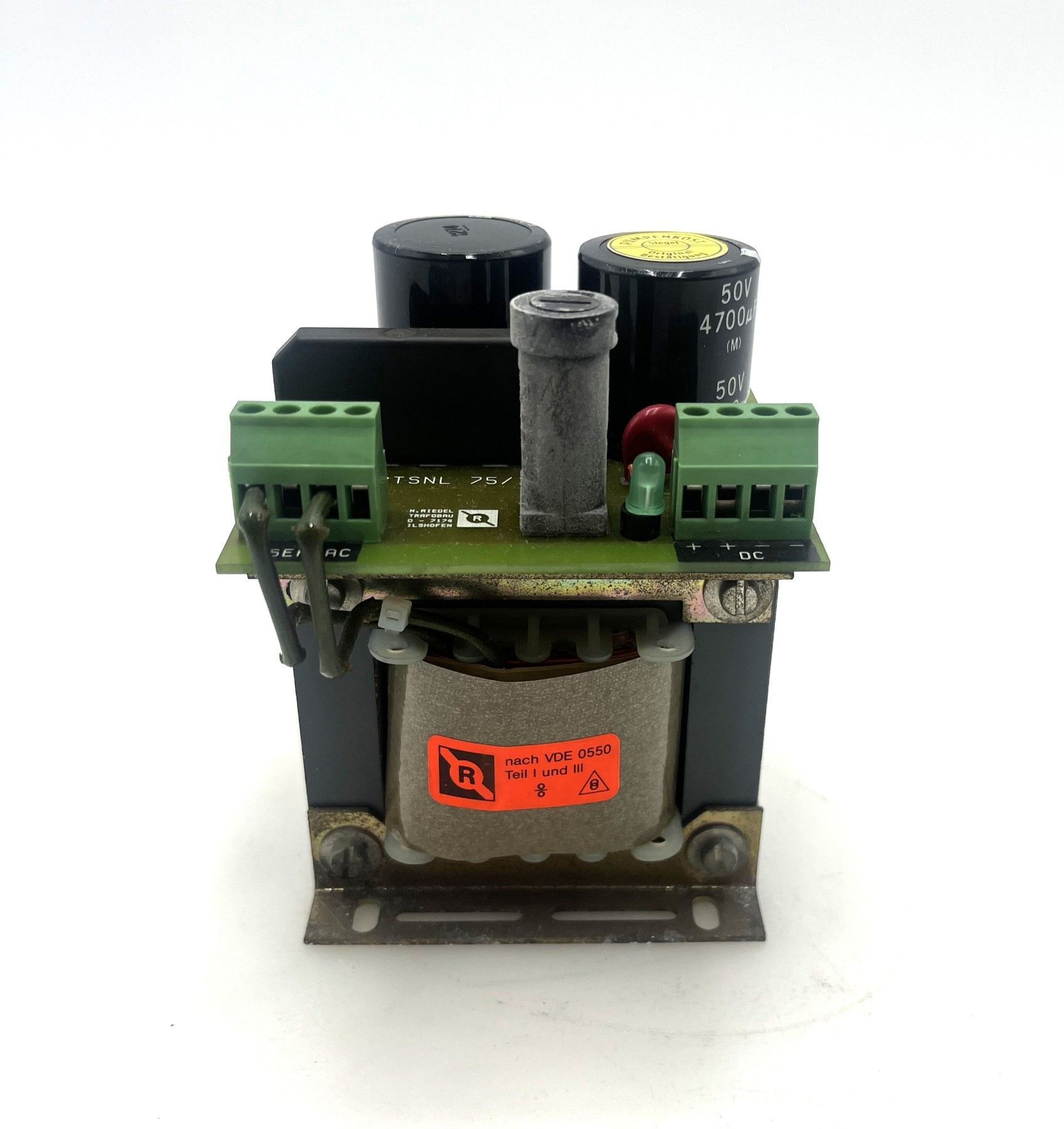 Riedel RTSNL 75 – 24V DC Netzteil Transformator Dieser hochwertige Transformator von Riedel (Typ RTSNL 75) liefert eine stabile 24V DC Ausgangsspannung und eignet sich ideal für Steuerungen, Maschinenbau und industrielle Anwendungen . Dank robuster Bauweise und zuverlässiger Technik ist er opt