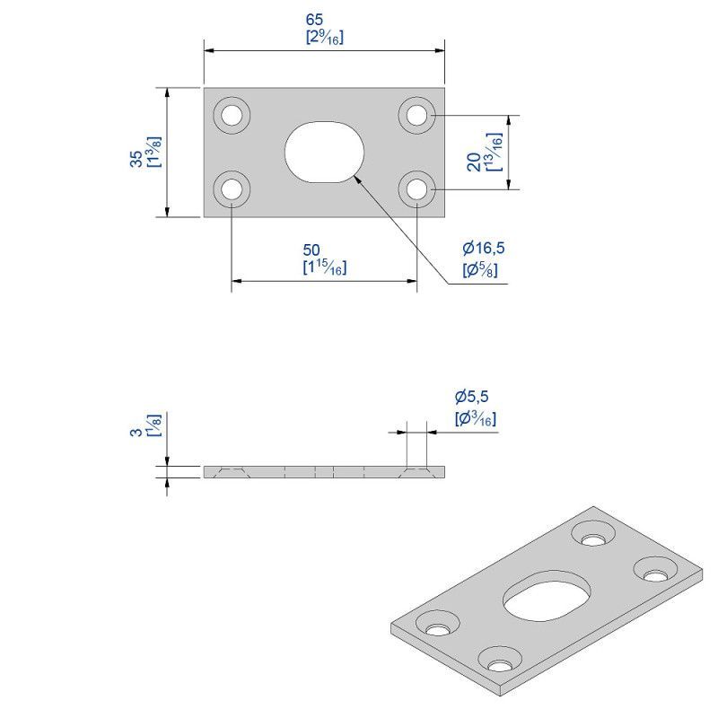 Riegelbodenplatte für Riegel 16 mm, zum Anschrauben aus Stahl, Durchmesser 16,5 mm