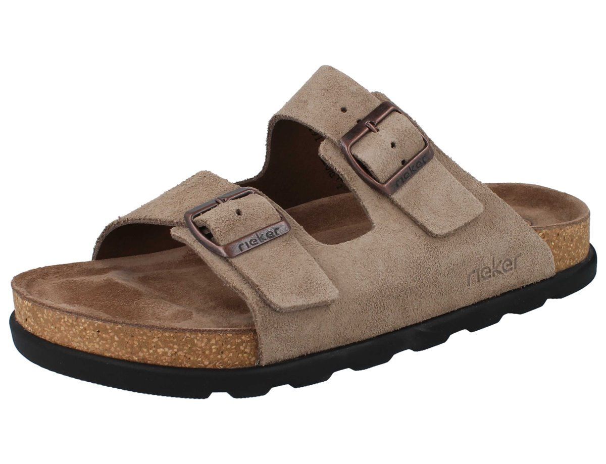 Rieker RIEKER Bendigo Herren Pantolette Sommerschuhe Hausschuhe hellbraun Nubukleder