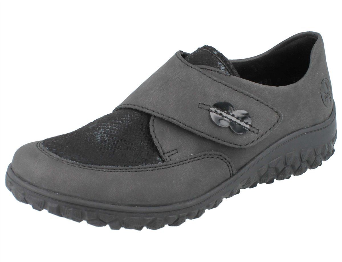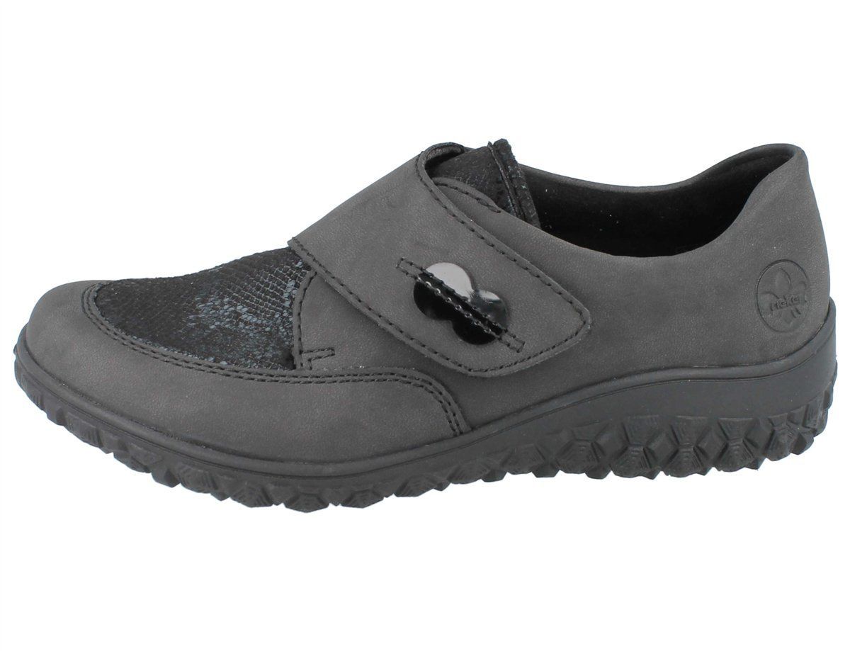 Rieker RIEKER Damen Kletthalbschuhe mit Wechselfußbett dunkelgrau Kunstleder Textil
