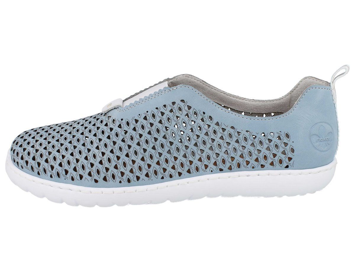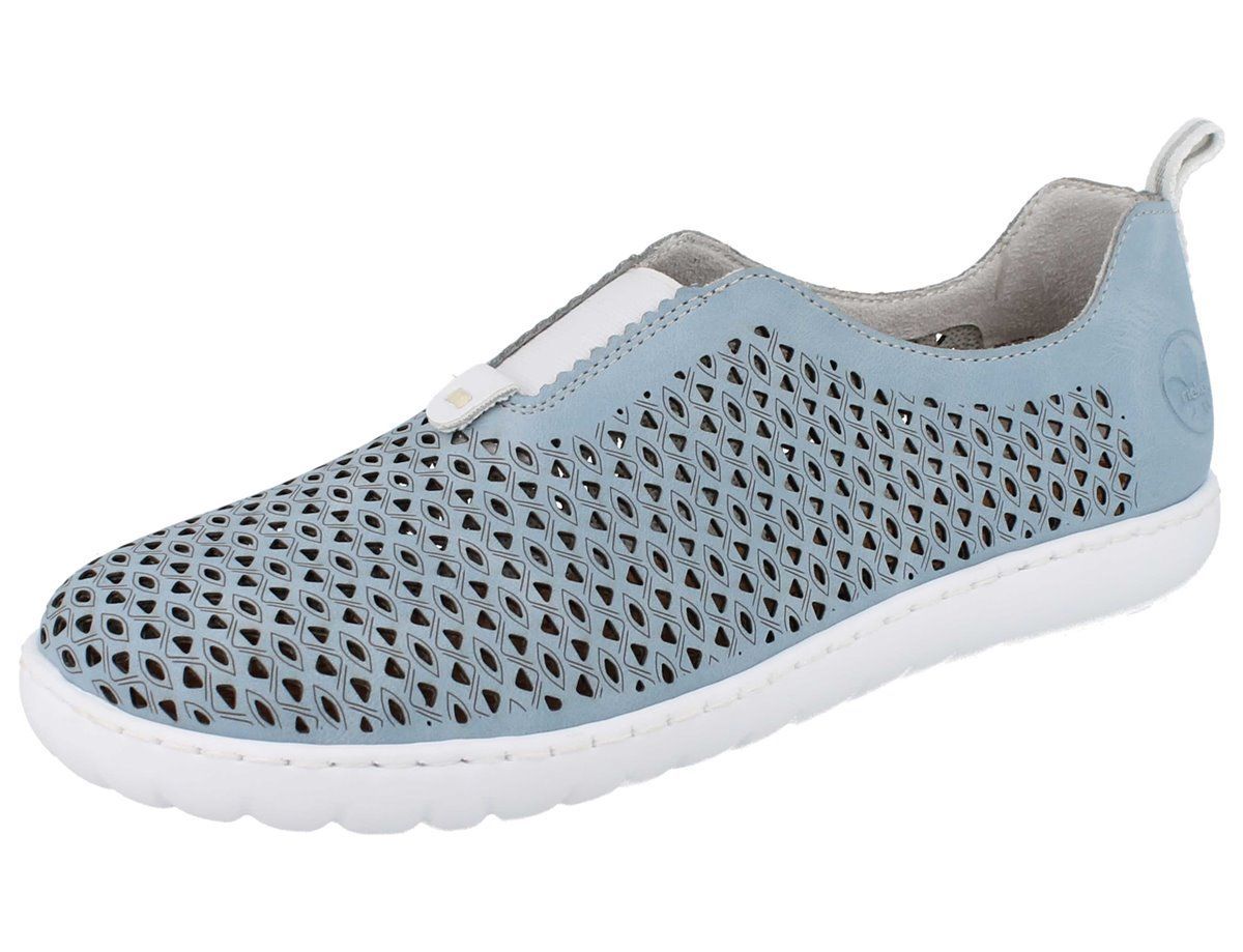 Rieker RIEKER Damen Slipper Schlupfschuh mit Lochmuster hellblau Kunstleder