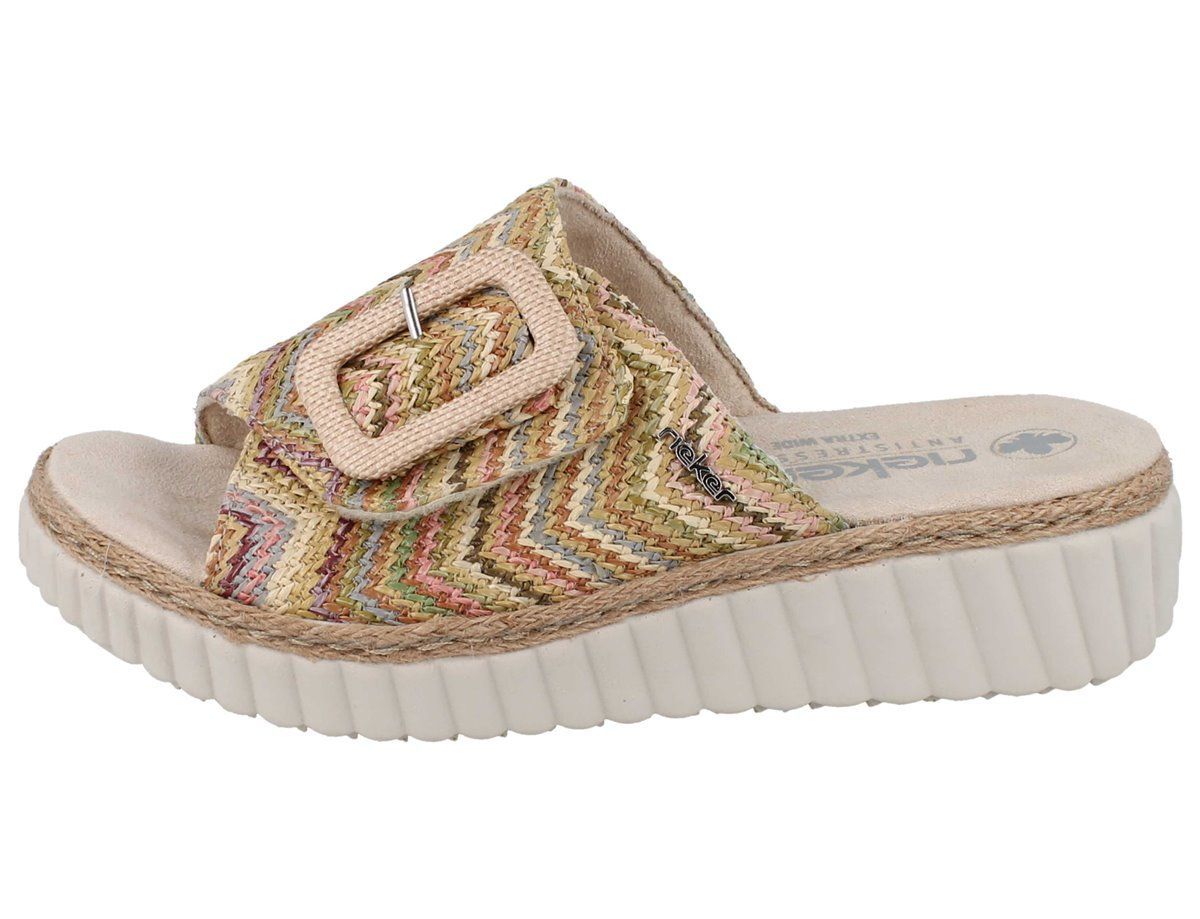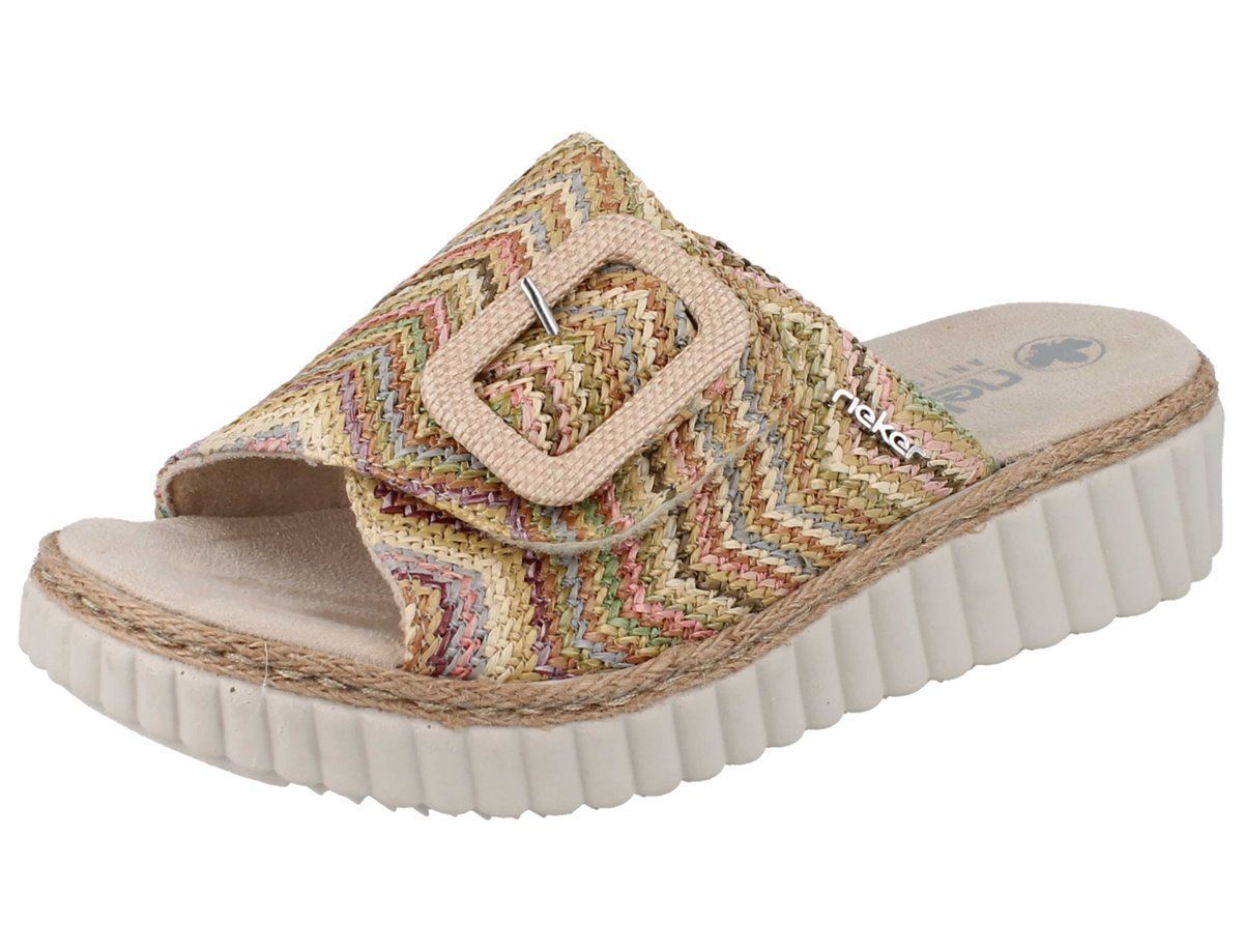 Rieker RIEKER Damen Sommer Pantolette Hausschuhe pastell mehrfarbig Bast Textil