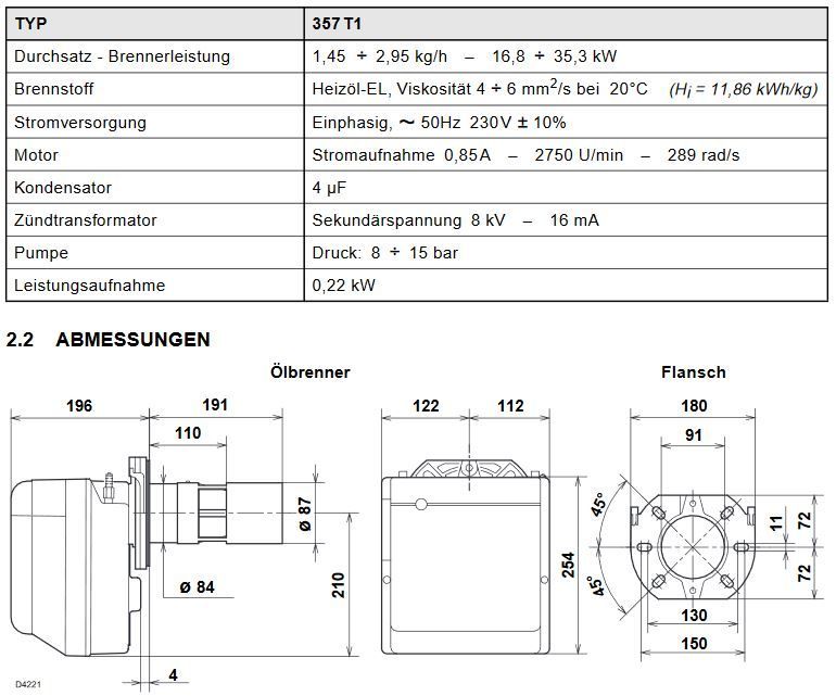 Riello Öl Gebläsebrenner BGK0.1 Ersatzbrenner Buderus Sieger BRE 16,8 - 35,3 KW