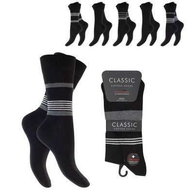 • 5 Paar Herren Socken 100% Baumwolle Schwarz Diabetikersocken ohne Gummi Baumwollsocke