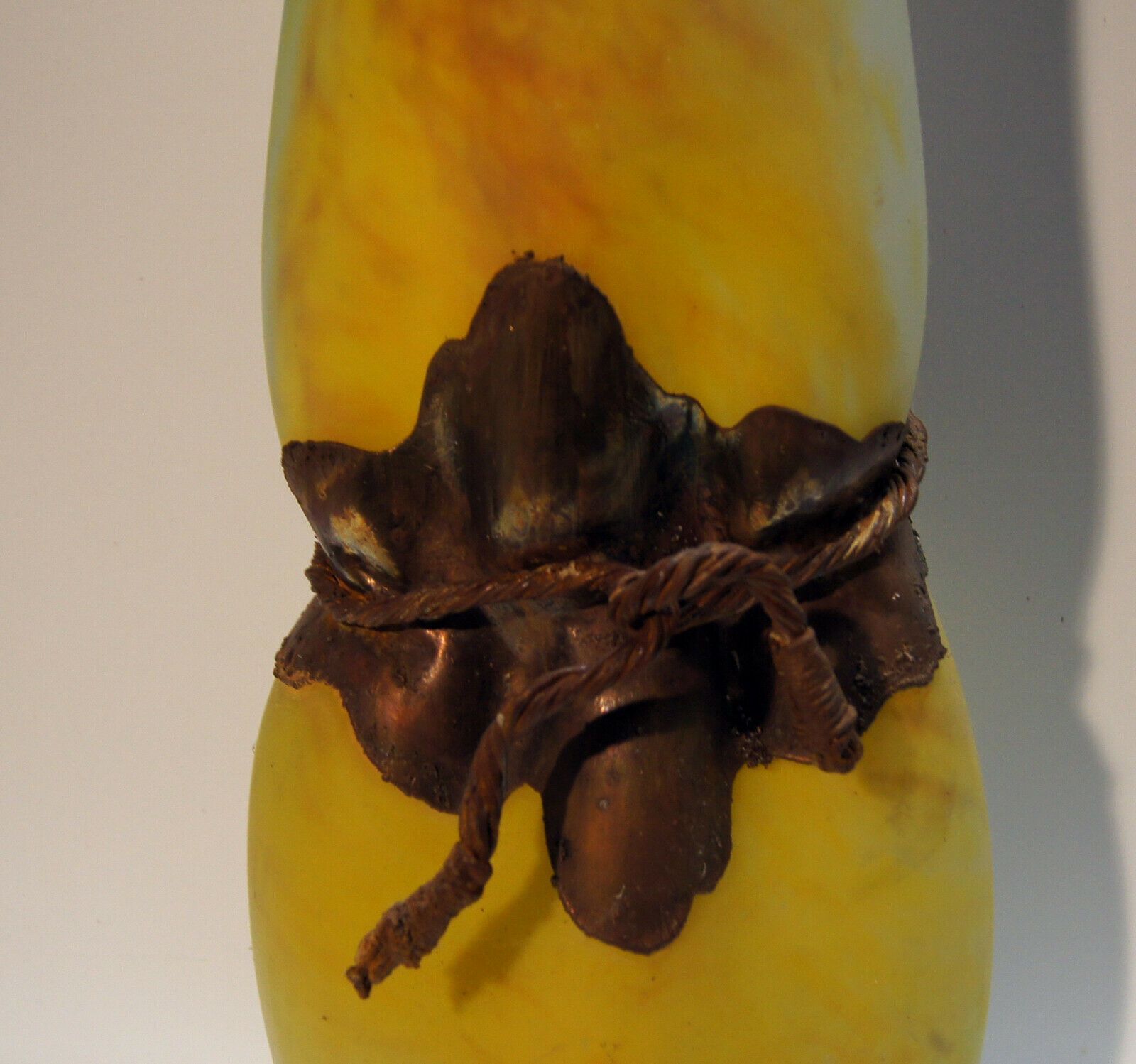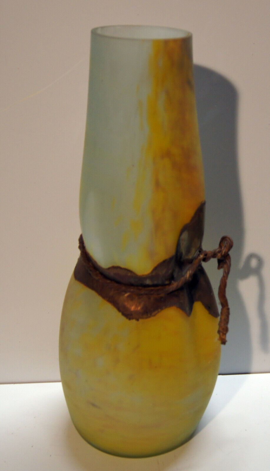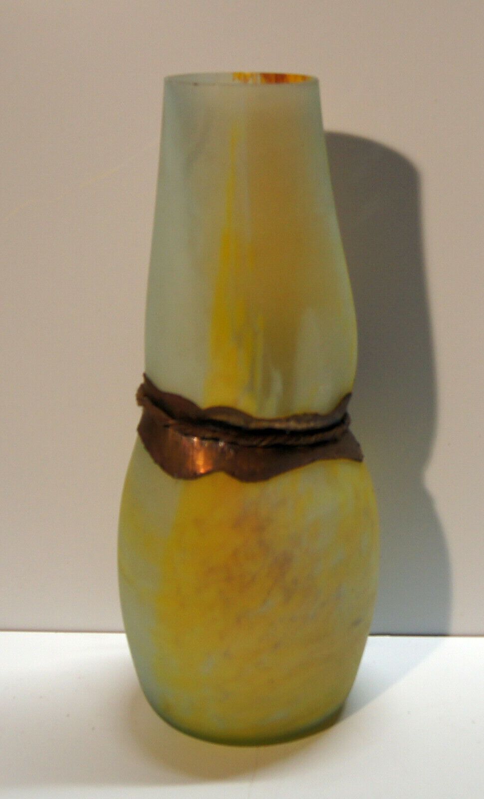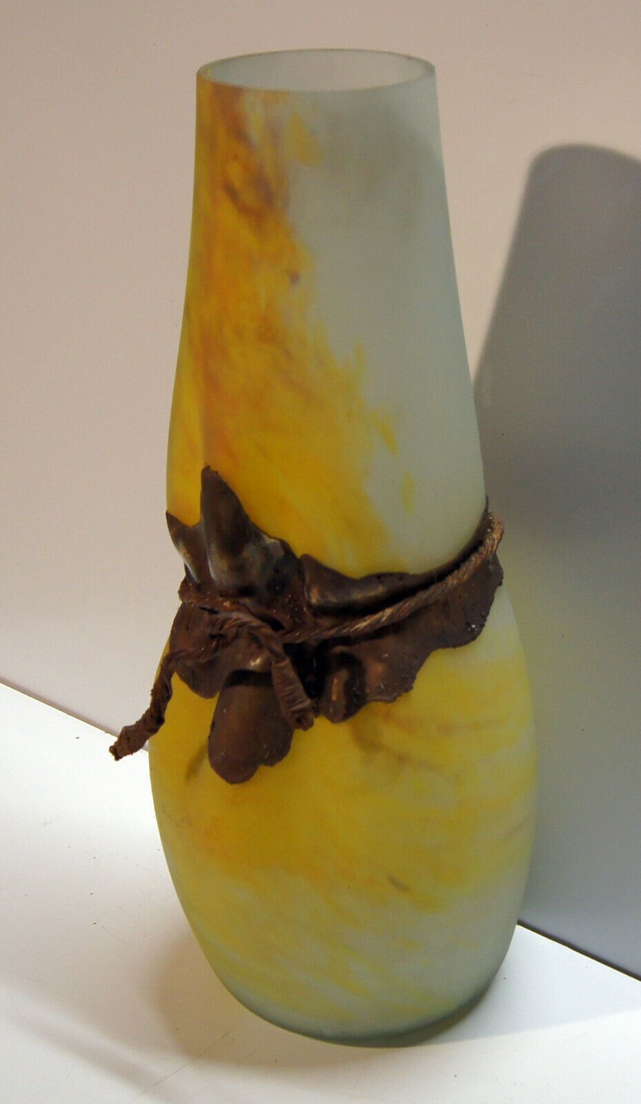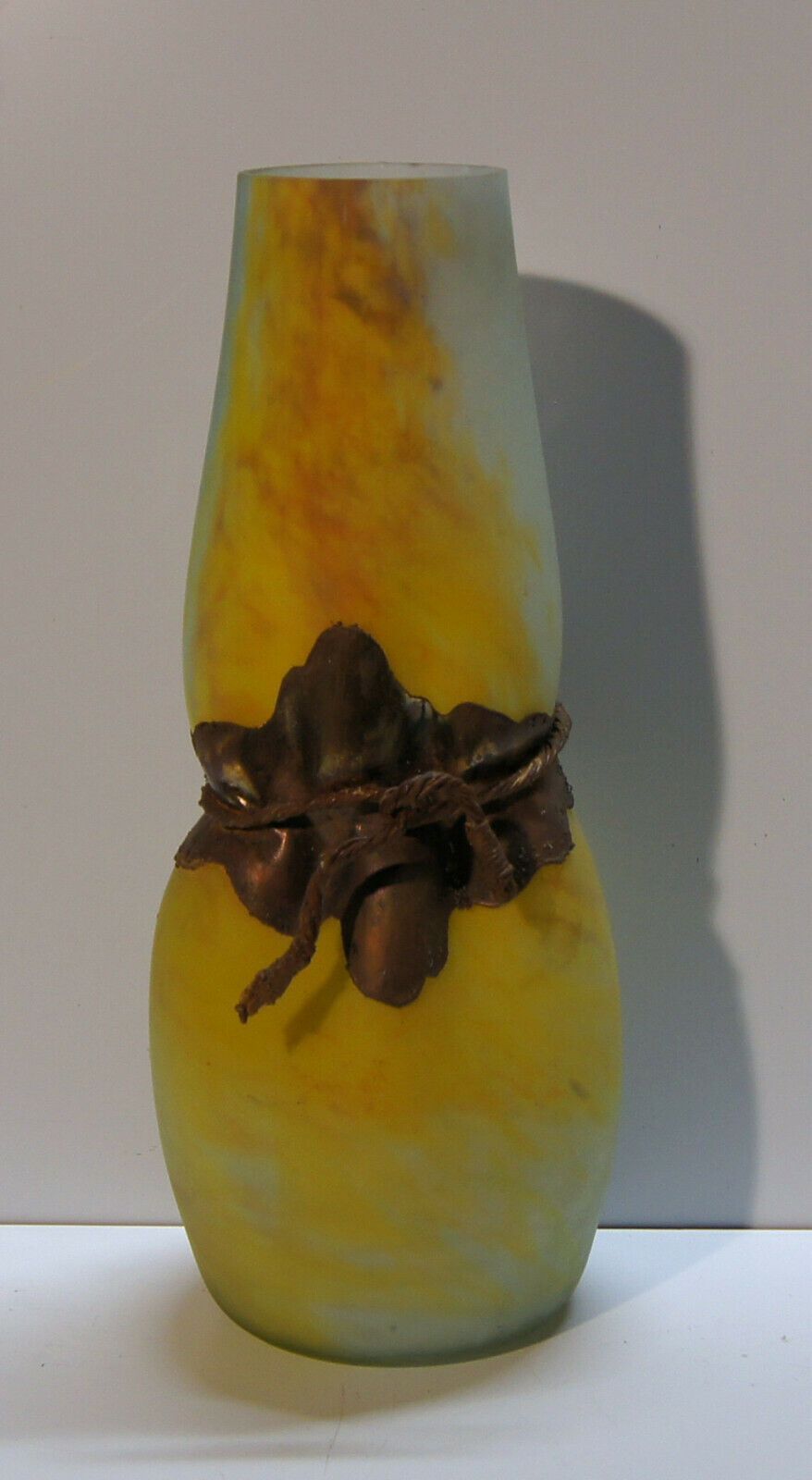 Riesen-Glasvase um 1970 (Jugendstil) . Ohne Marke: siehe Foto. Material: Glas Eisen. Mit herrlichem Farbspiel! Sehr schwer! Maße: H 54 cm. Antikes am Deich - Inh: Oliver Kipp-Trense G M T Sprache erkennen Afrikaans Albanisch Arabisch Armenisch Aserbaidschanisch Baskisch Bengalisch Bosnisch Bulgarisc