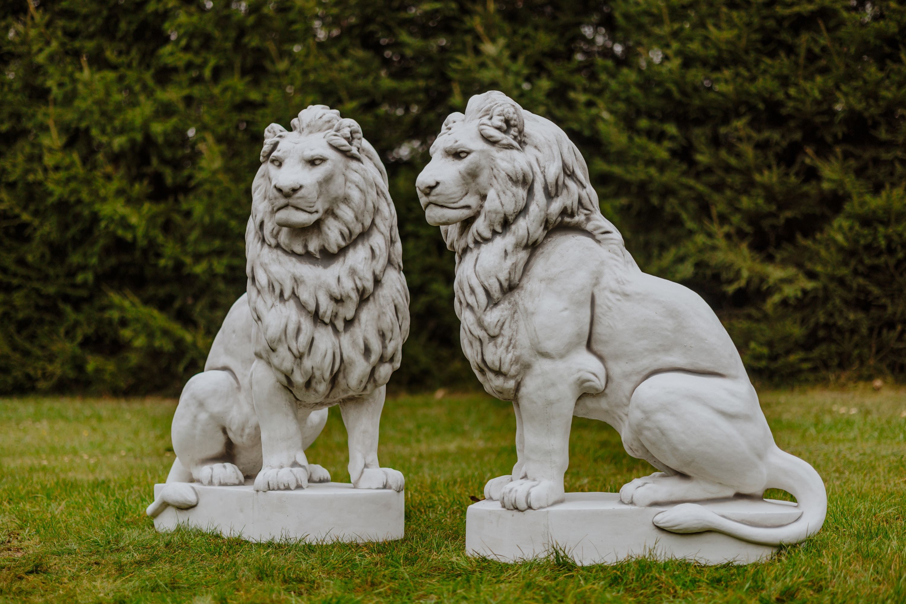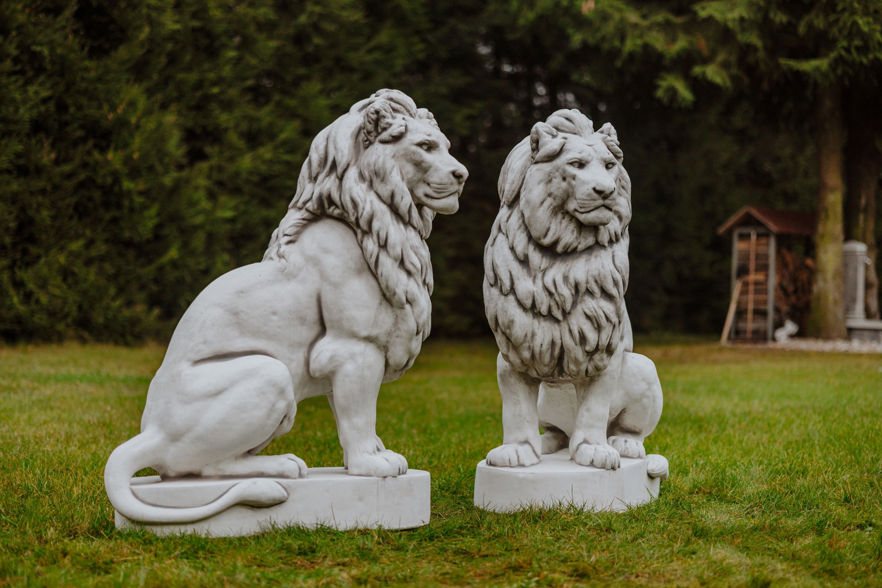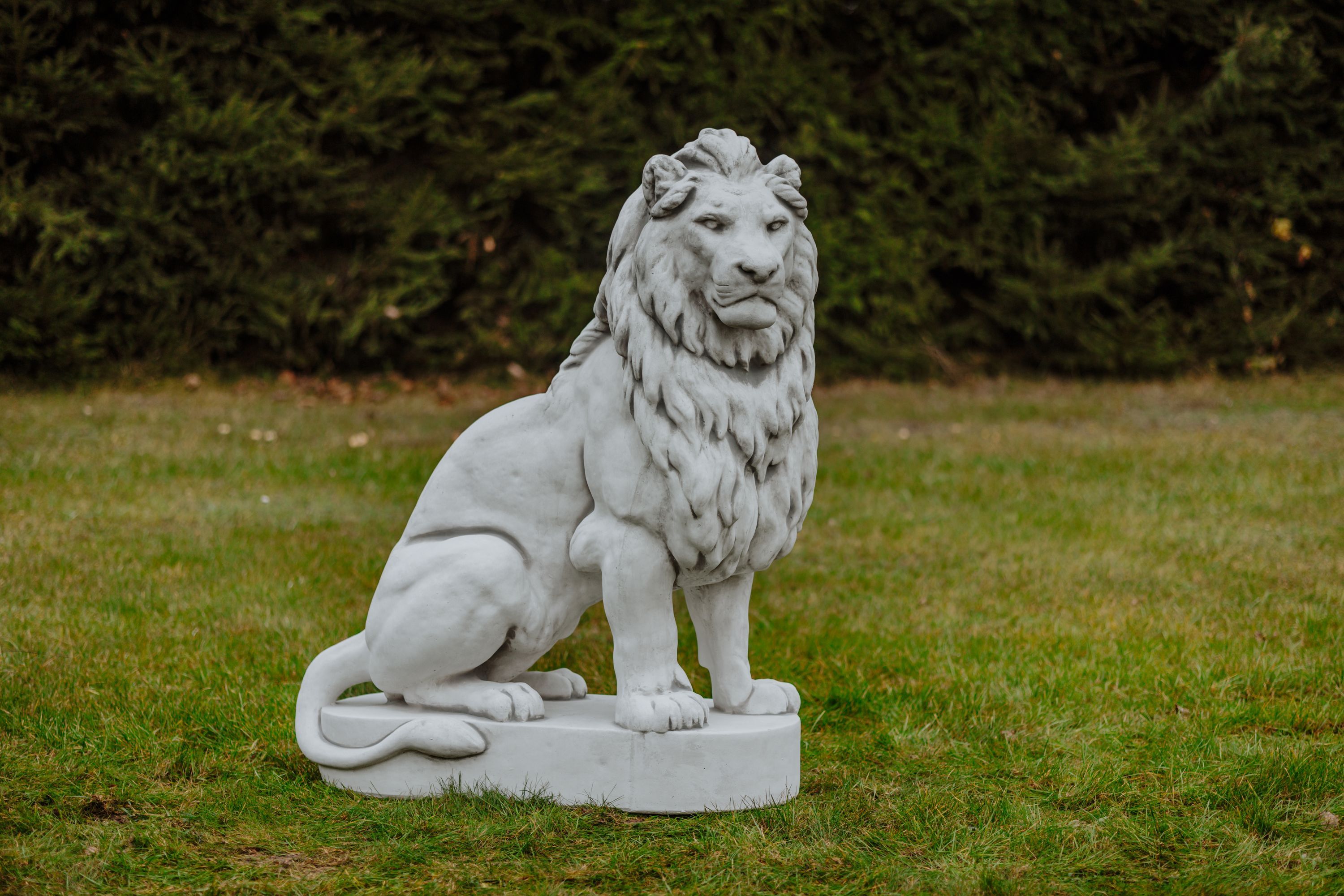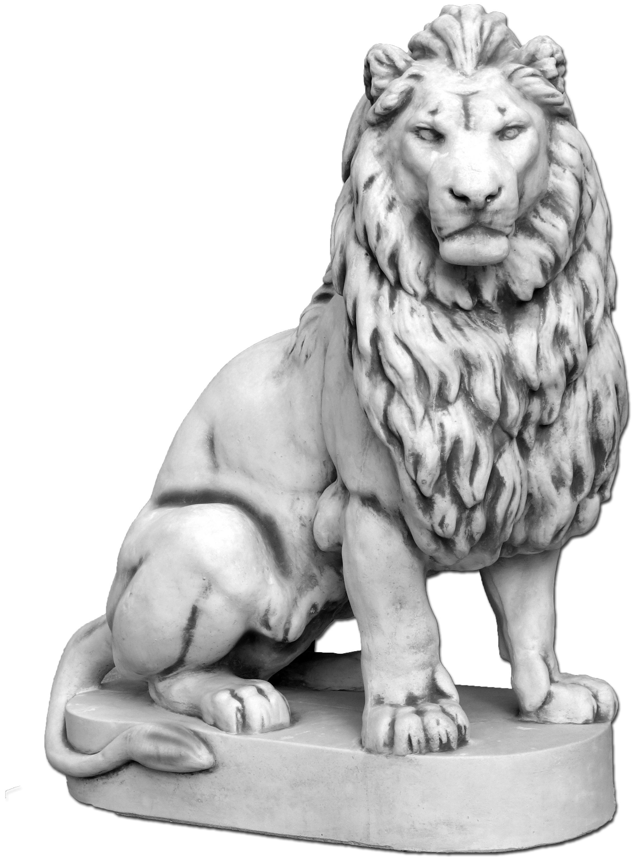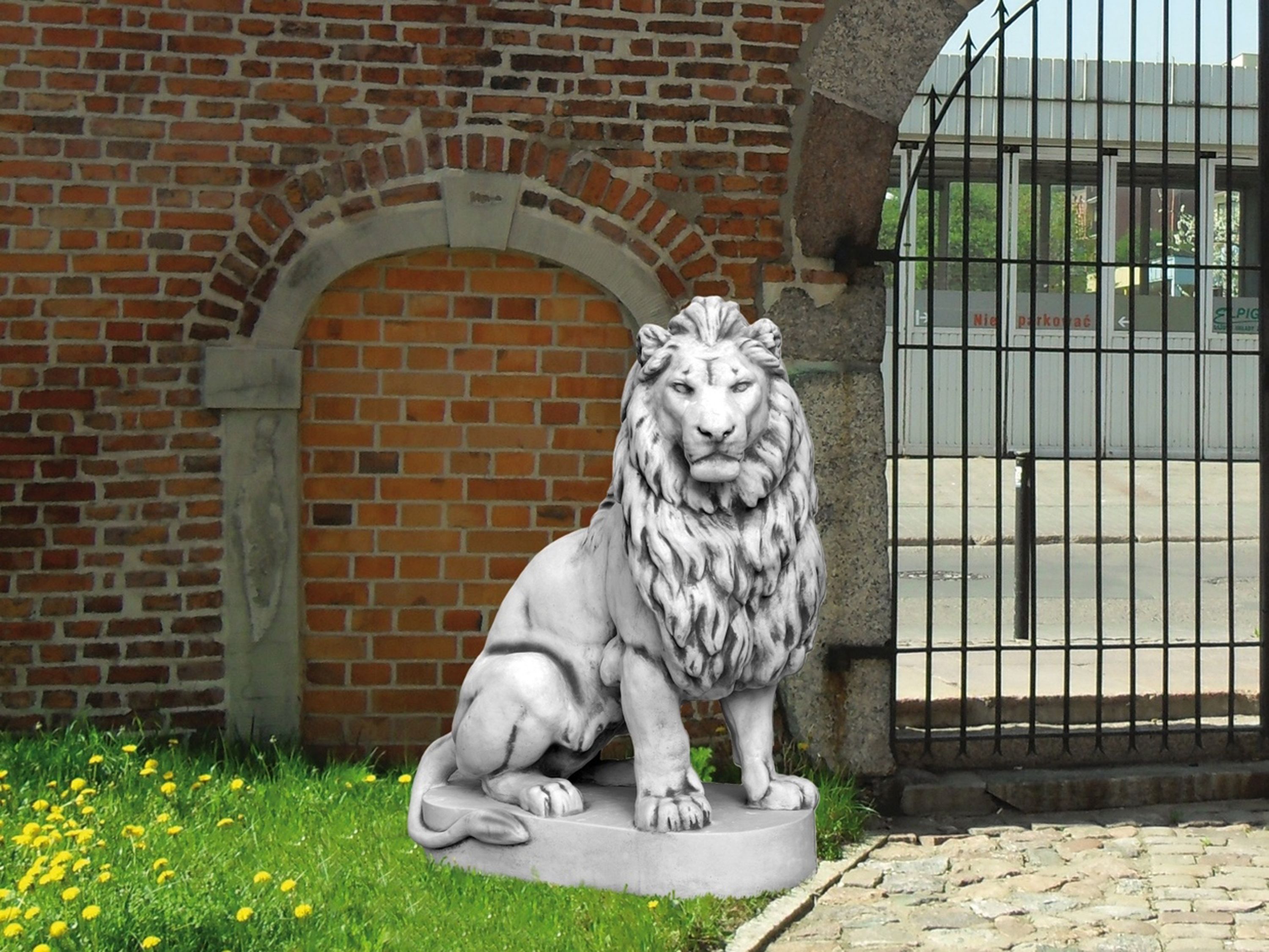 Riesiger Stein - Löwe auf Podest Blick rechts Torwächter Steinguss frostsicher