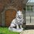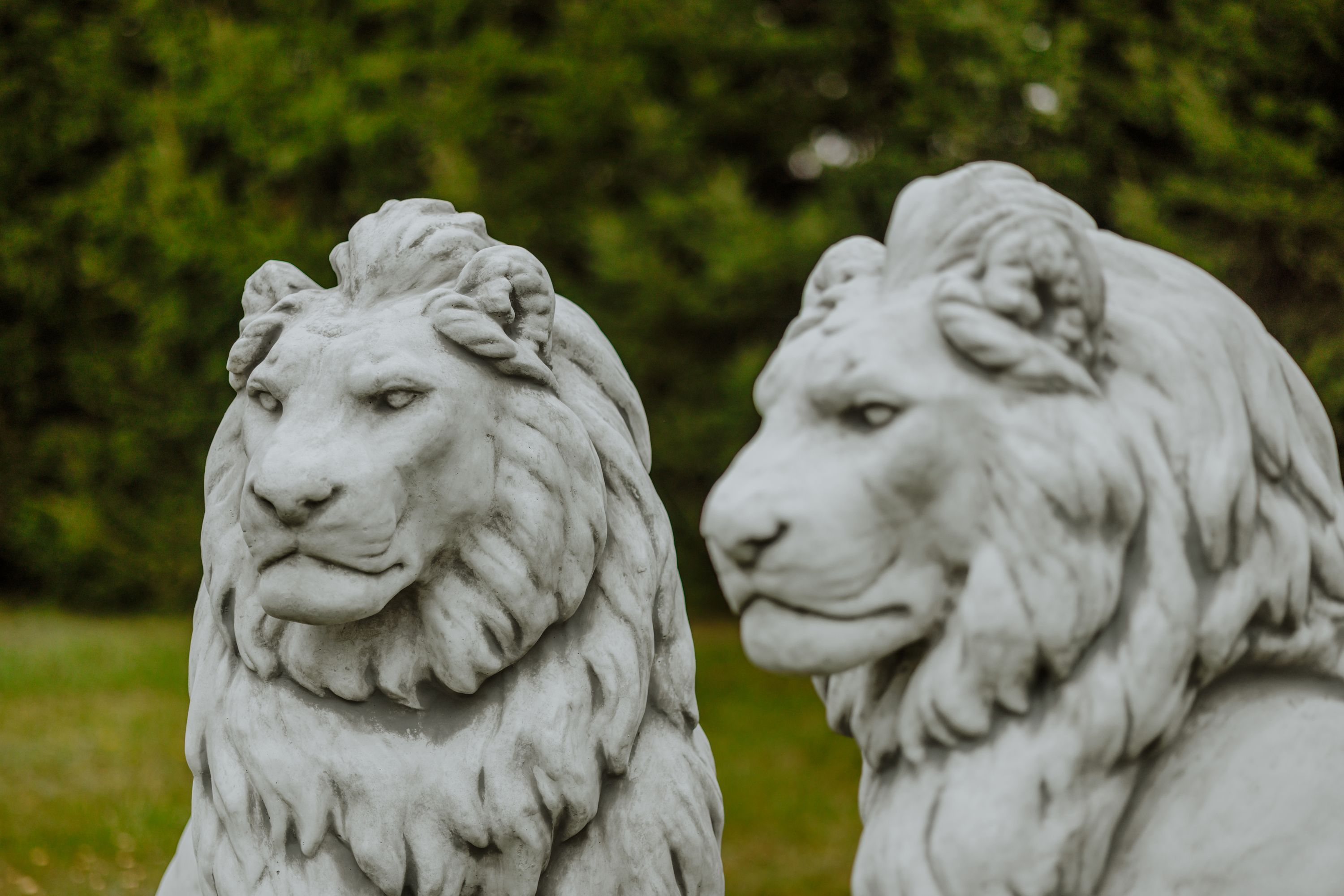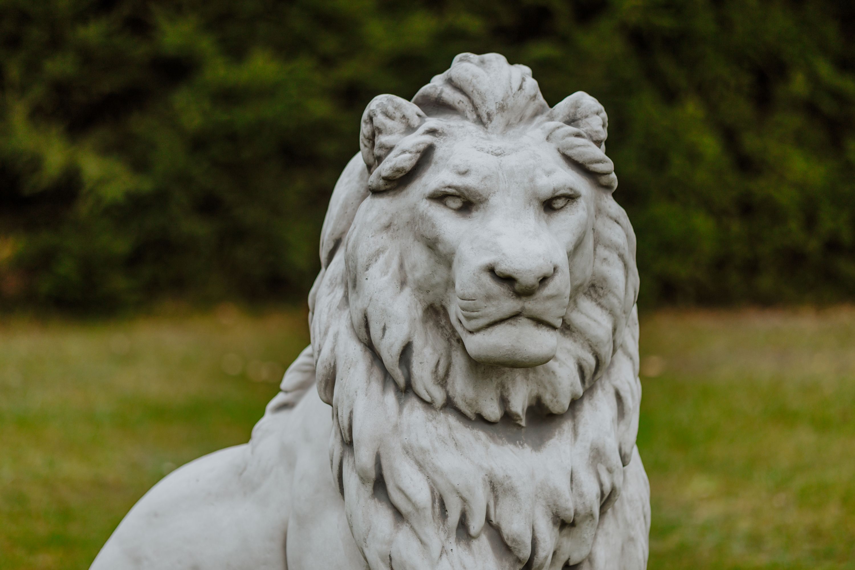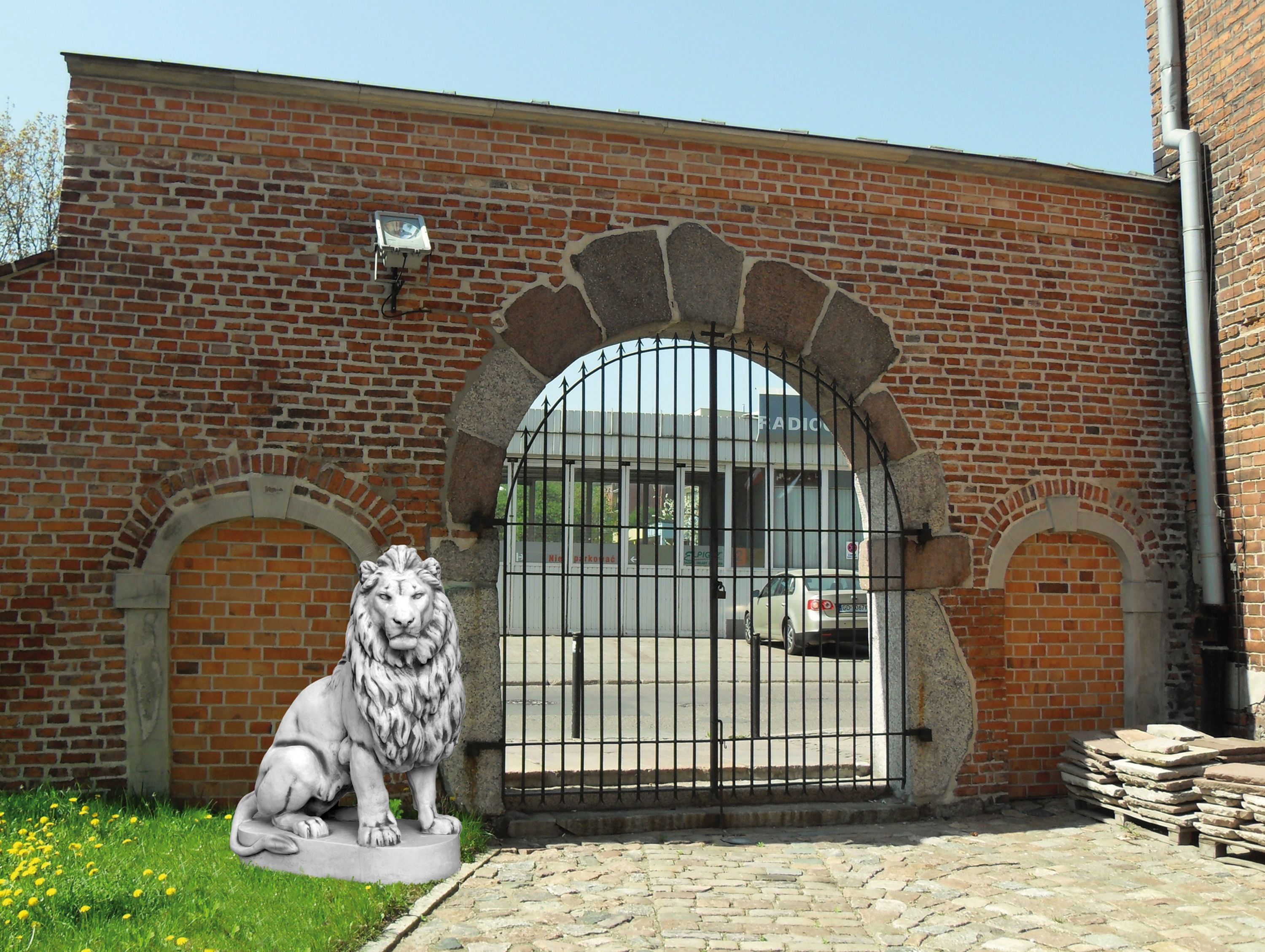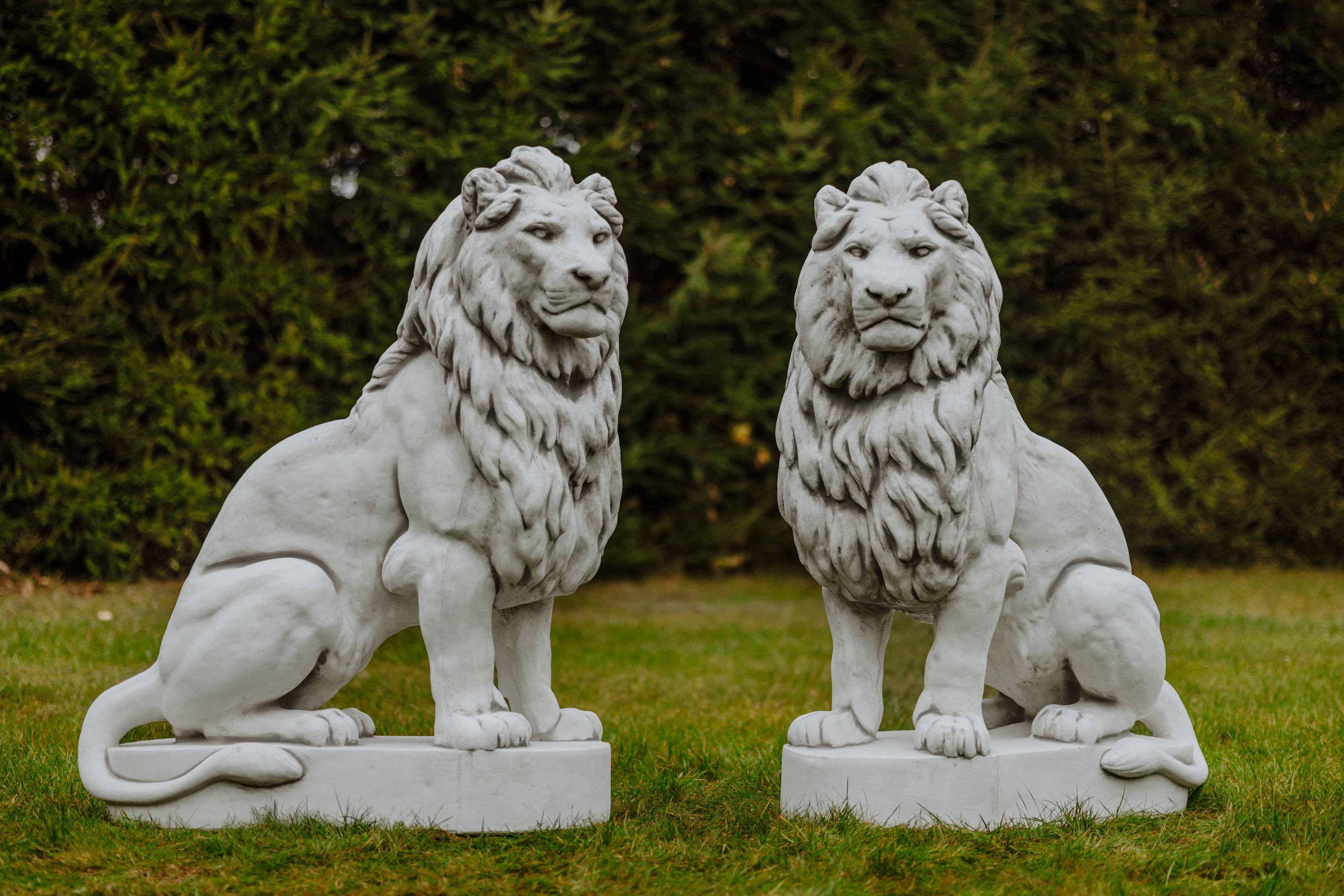 Riesiger Stein - Löwe auf Podest Blick rechts Torwächter Steinguss frostsicher