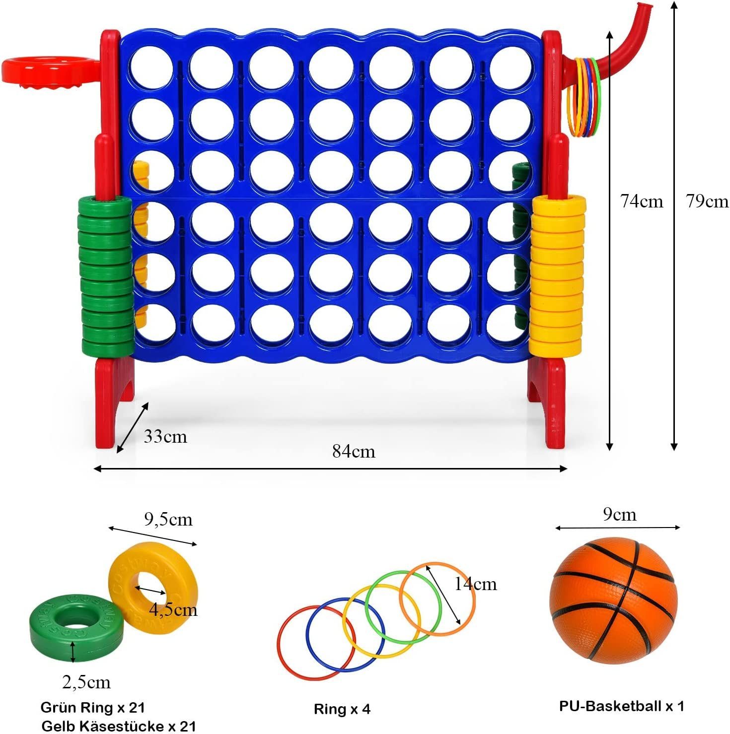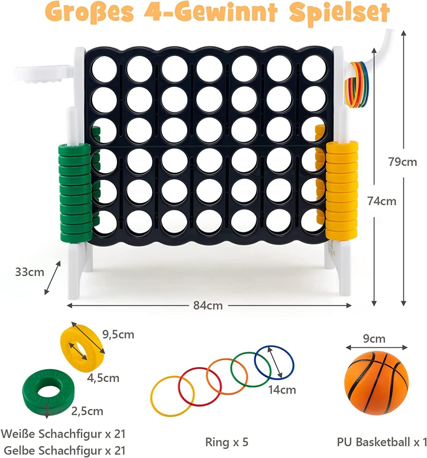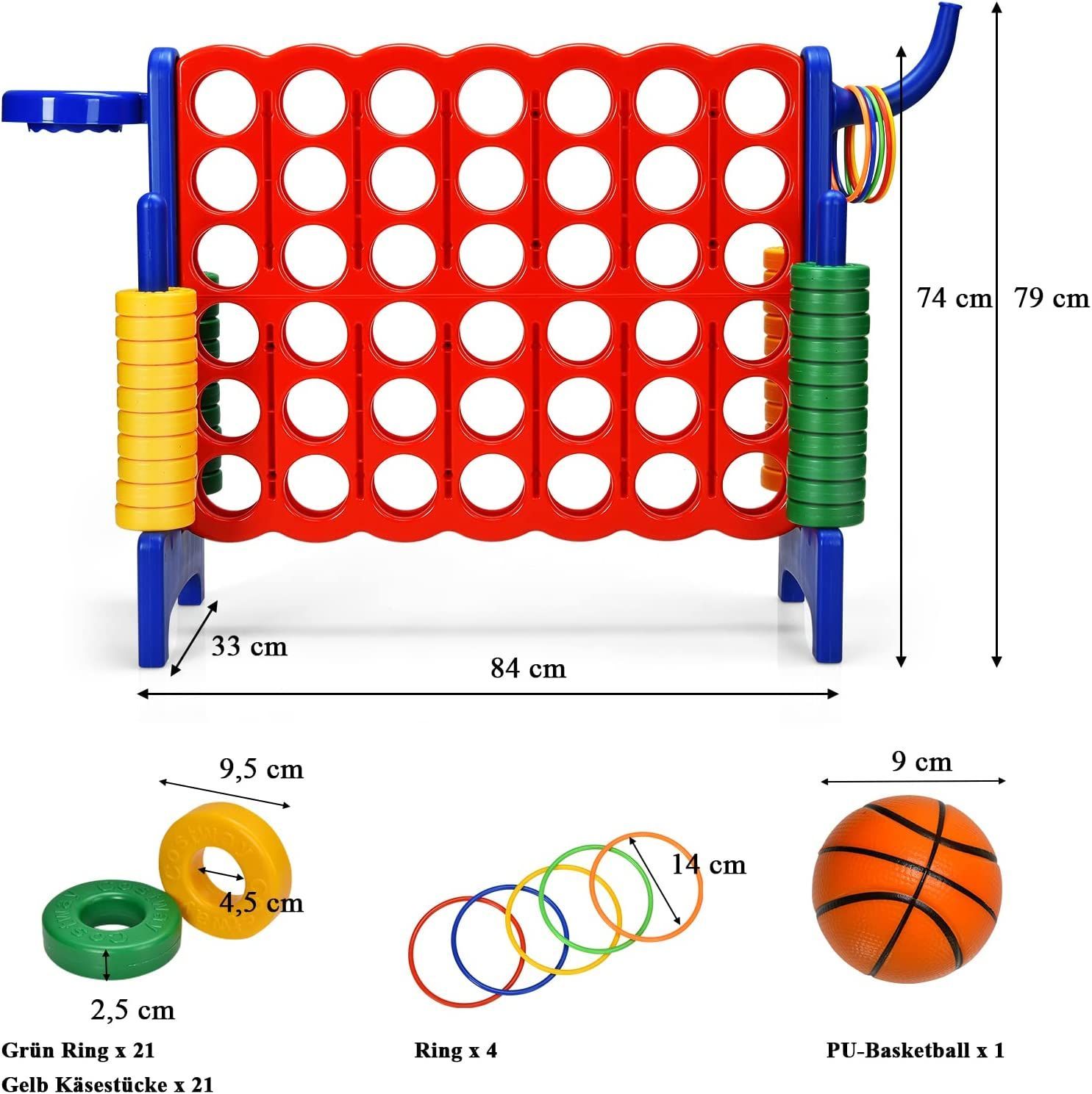 Riesiges 4 Gewinnt Spielset mit Basketballkorb und Wurfspiel, inkl. 42 Jumbo Ringen