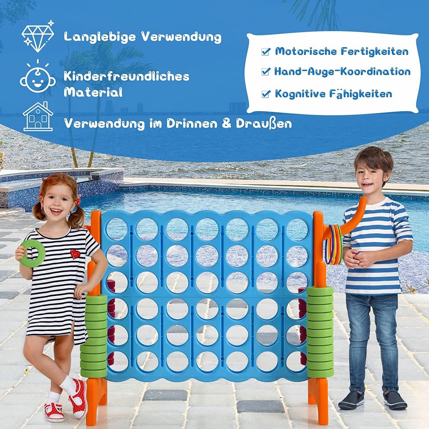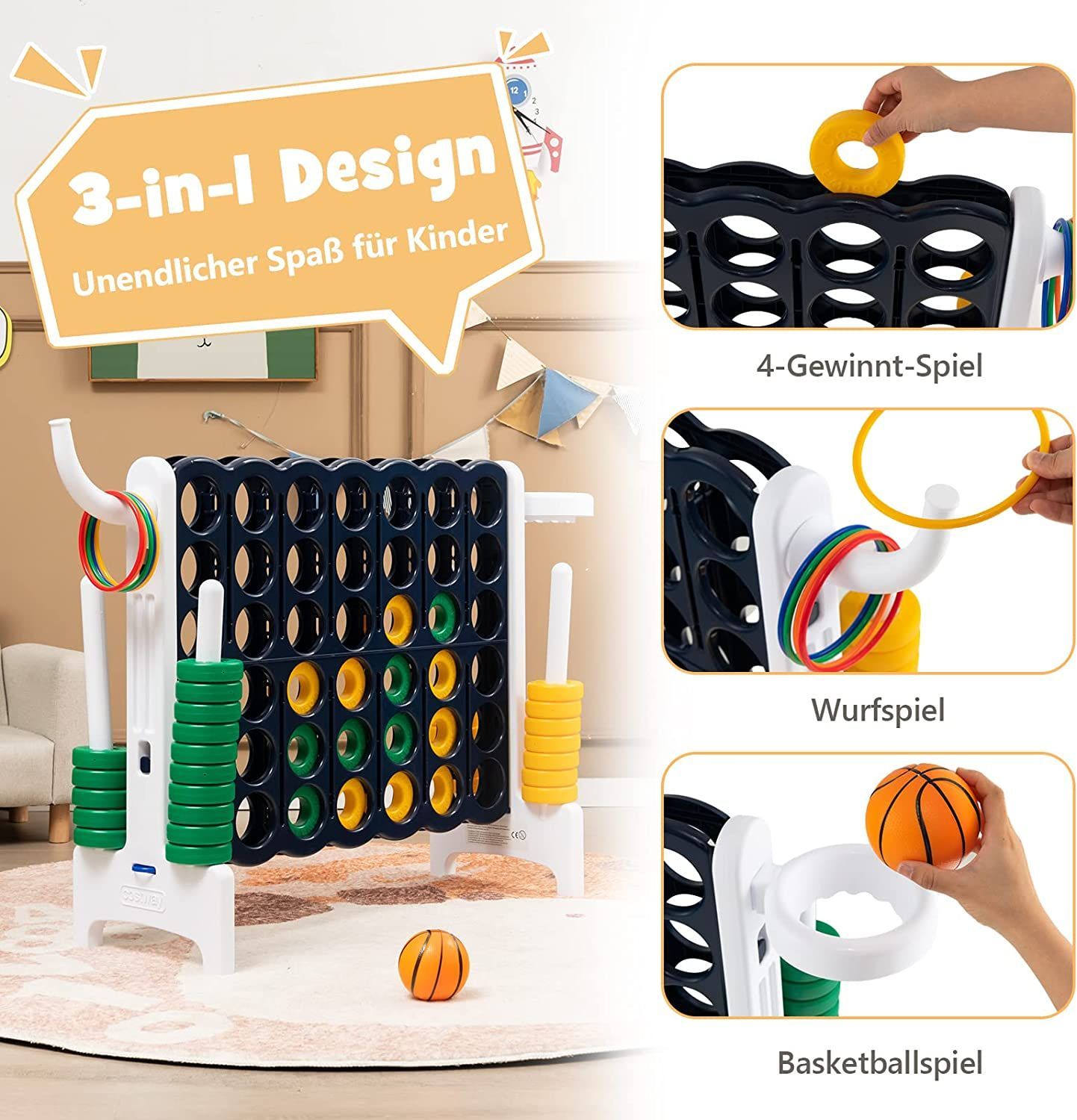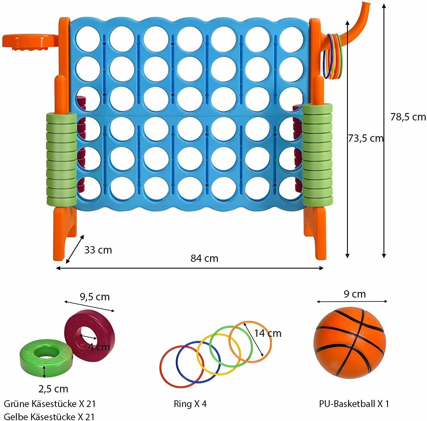 Riesiges 4 Gewinnt Spielset mit Basketballkorb und Wurfspiel, inkl. 42 Jumbo Ringen