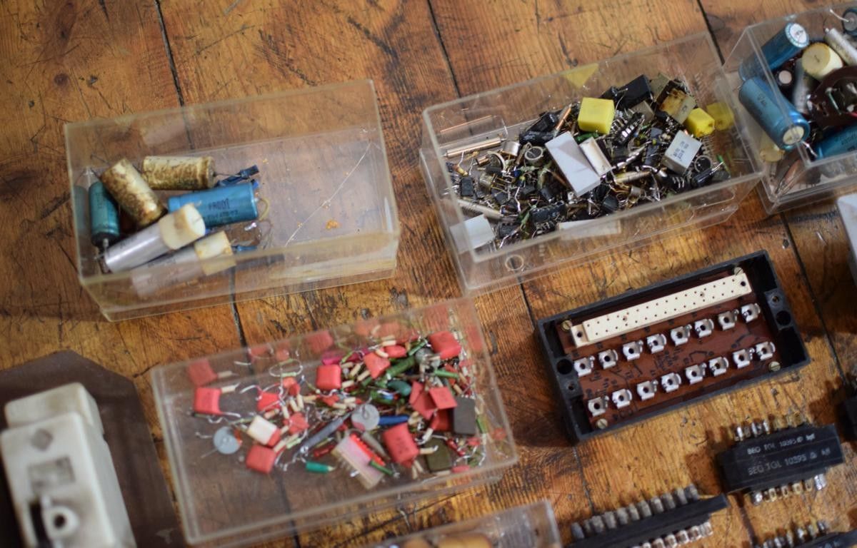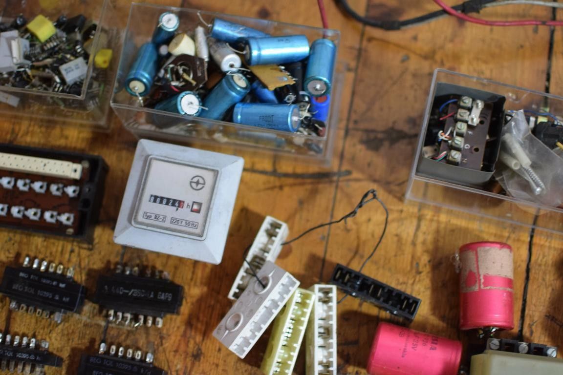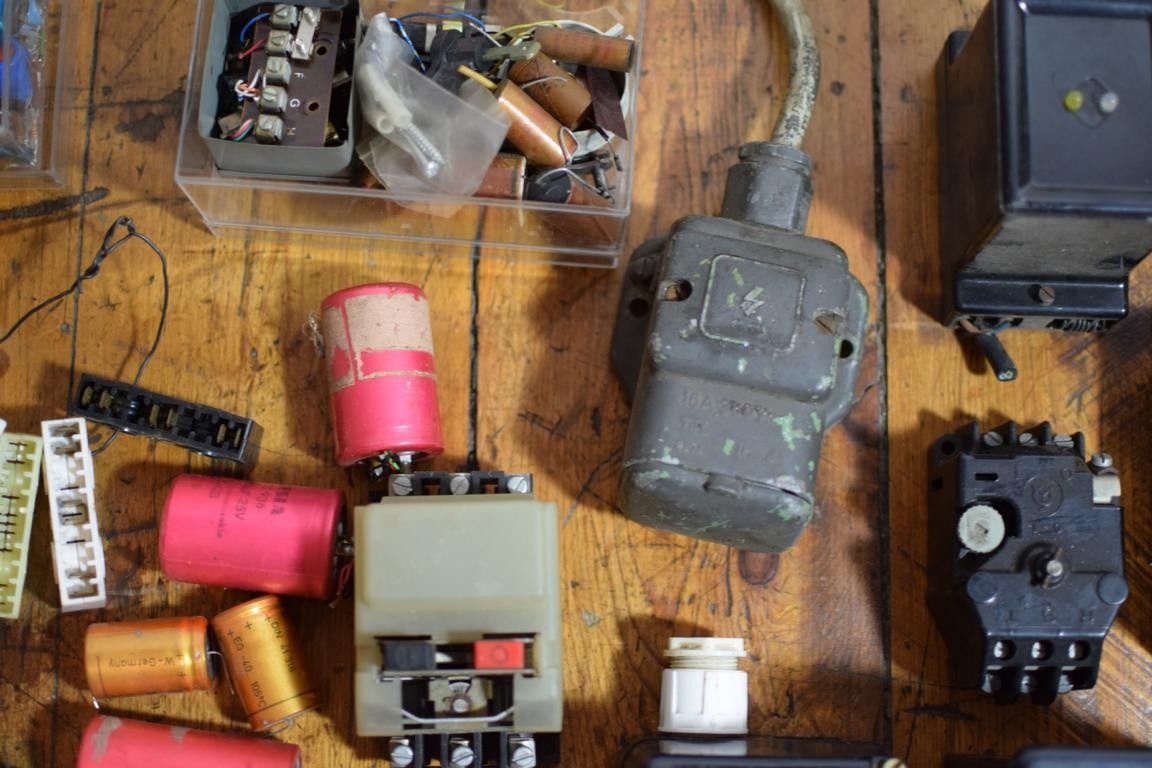 riesiges Konvolut alter Elektro- Ersatzteile (über 200 Elemente) aus der ehemaligen DDR Kondensatoren, Widerstände, Radioantennen, Leistungschütze Schutzschalter Lautsprecher, Travos, Buchsenleisten Zählwerke und vieles mehr mit Gebrauchsspuren, funktionsfähiges Material Leistungsdetails soweit verfügbar, bitte den Fotos entnehmen