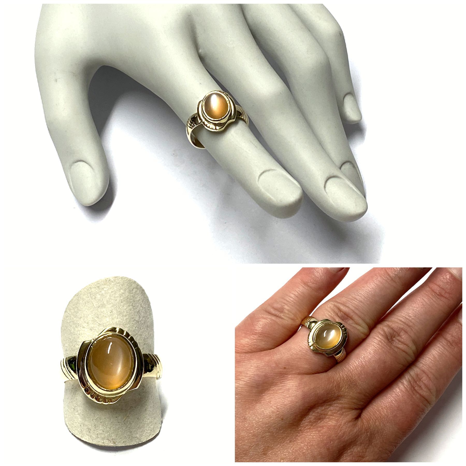 Ring 333/- Gold Mondstein orange Cabochon oval Schmuckring #62