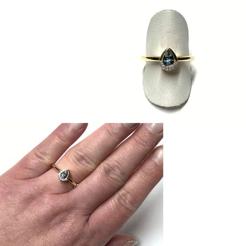 Ring 585/- Gold Aquamarin tropfen facettiert + Diamant w/P1 Schmuckring Solitär #57
