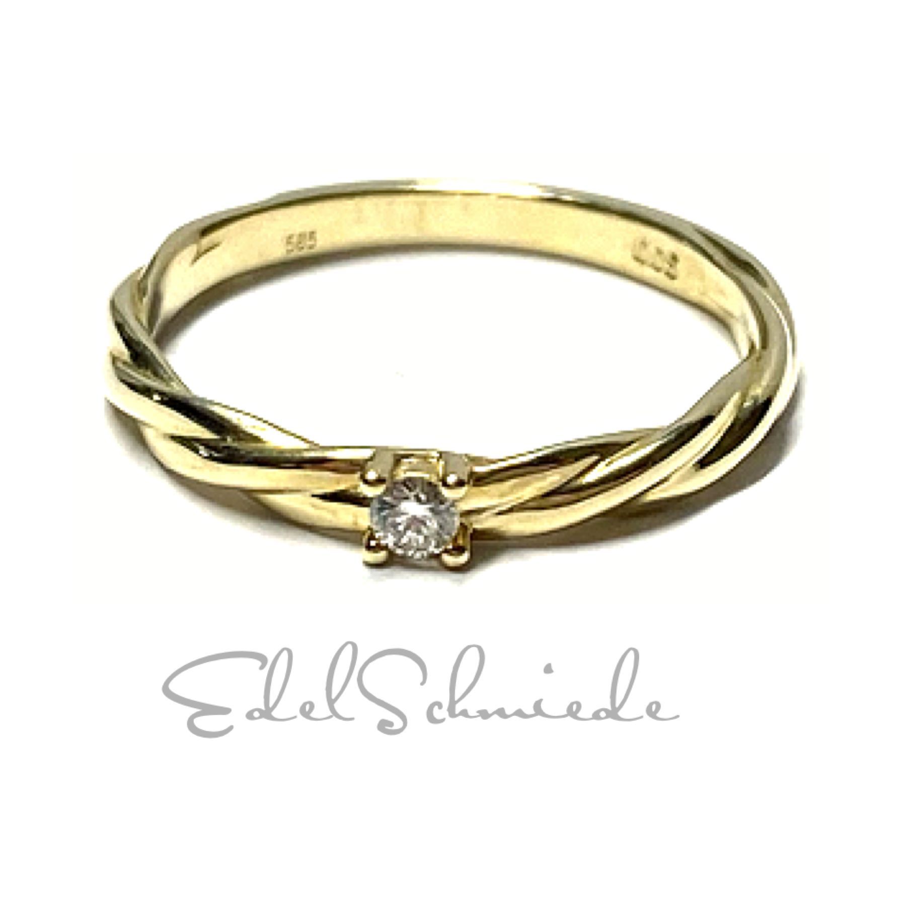 Ring 585/- Gold Brillant 0,05ct (w/si) Bandring Kordeloptik Verlobungsring Vorsteckri