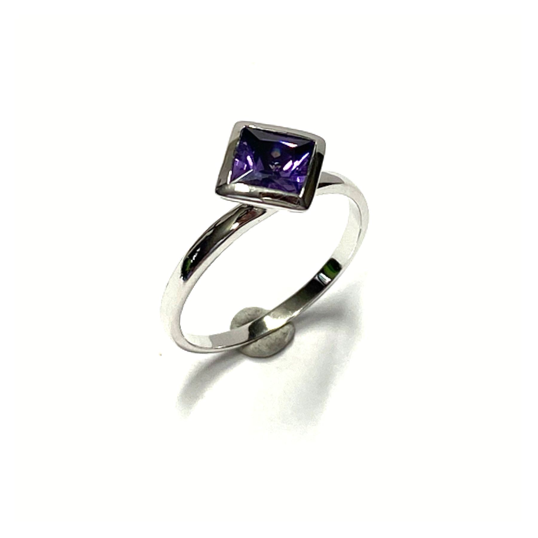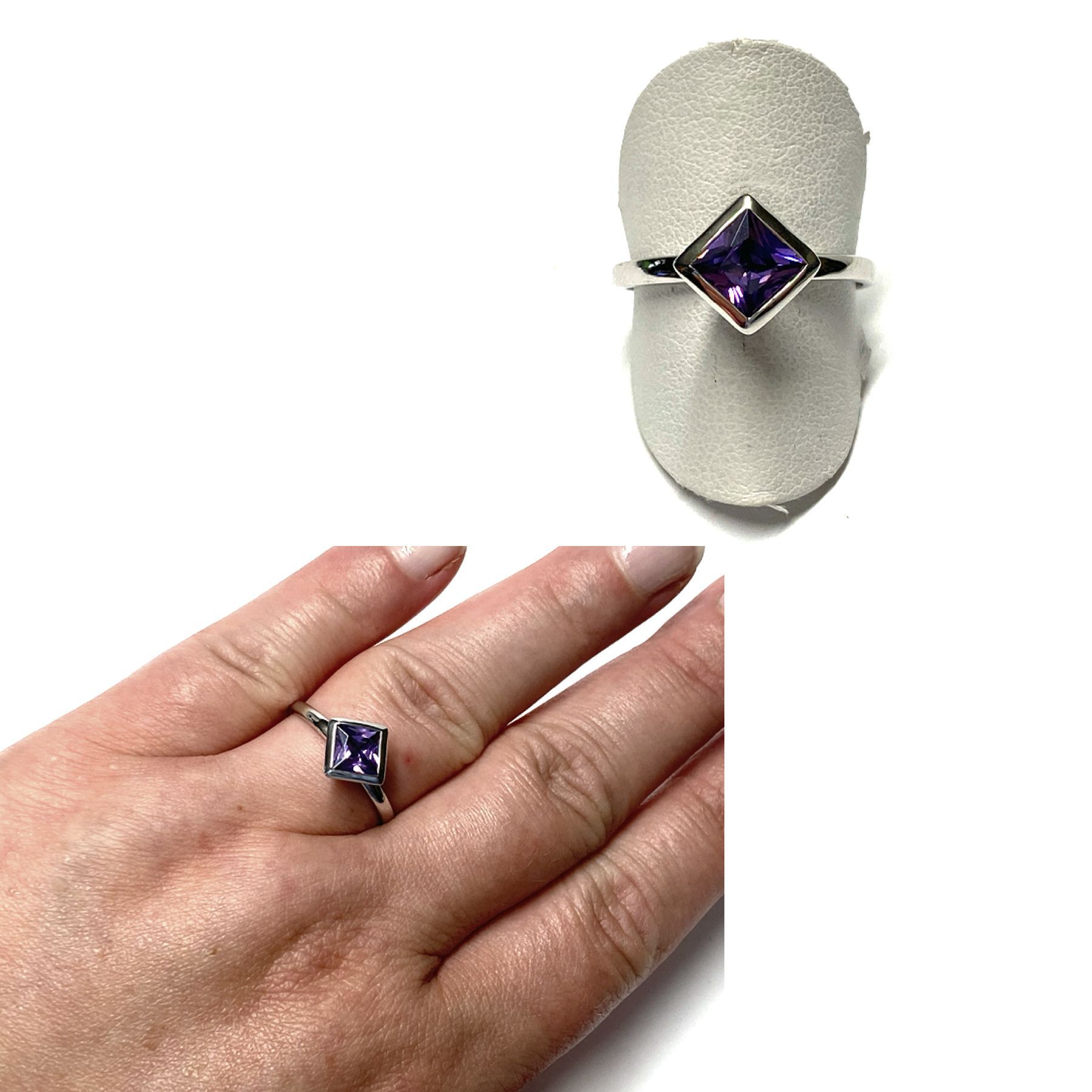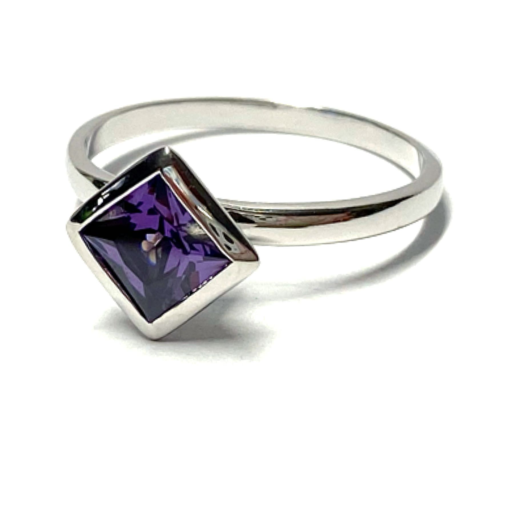 Ring 925/- Silber rhodiniert poliert Zirkonia lila carré #60