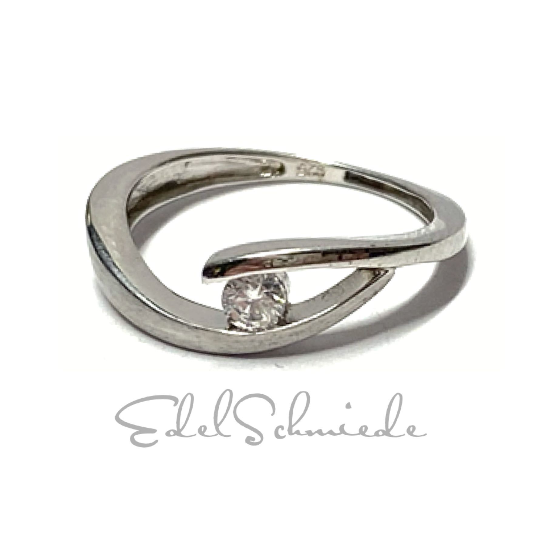 Ring 925/- Silber rhodiniert Zirkonia weiß Glanz Solitär Klassiker #44
