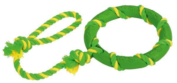 Kerbl Ring am Seil, grün-gelb, 47 cm Vollgummi/ Baumwolle