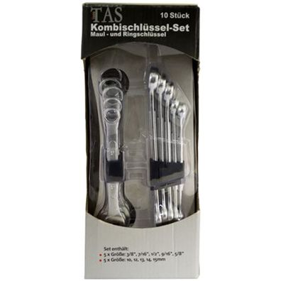 • Set Schraubenschlüssel 10 teilig Stahl Kombi Werkzeuge Maul Ringe Metallclip