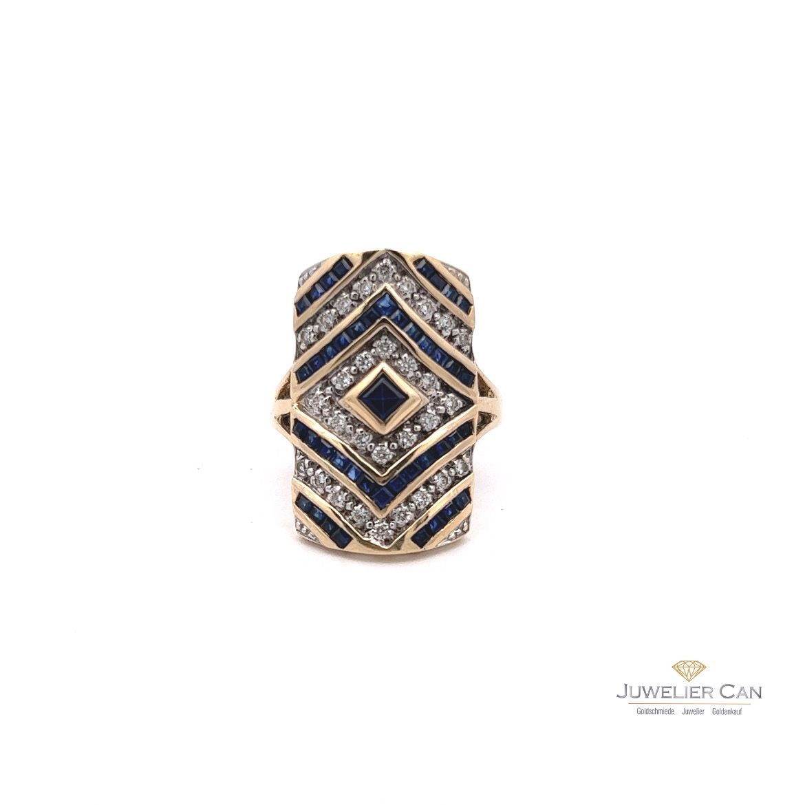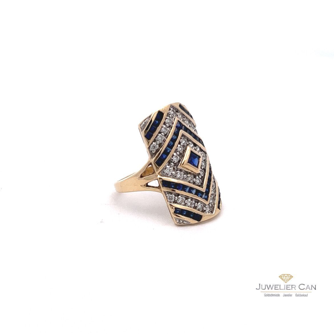 Ring mit Baguette Saphir und Zirkonia in Gelbgold 14 kt