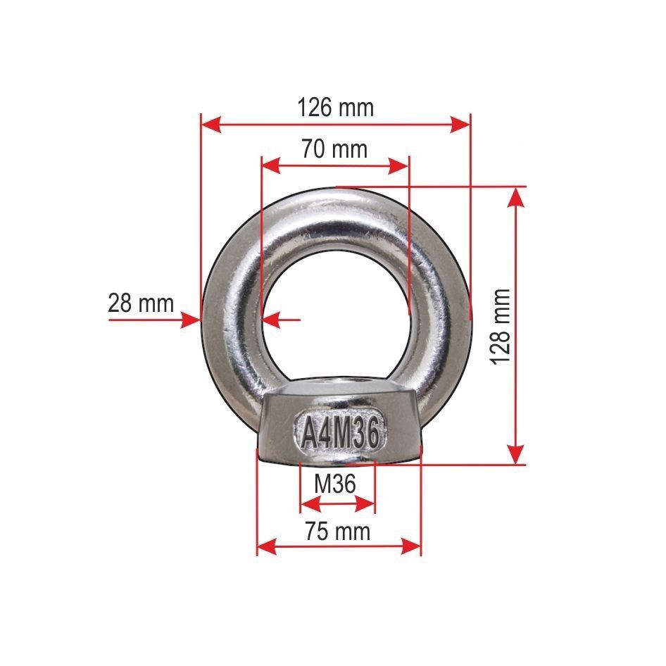 Ringmutter M36 A4 Edelstahl ähnlich DIN 582 gegossene Form
