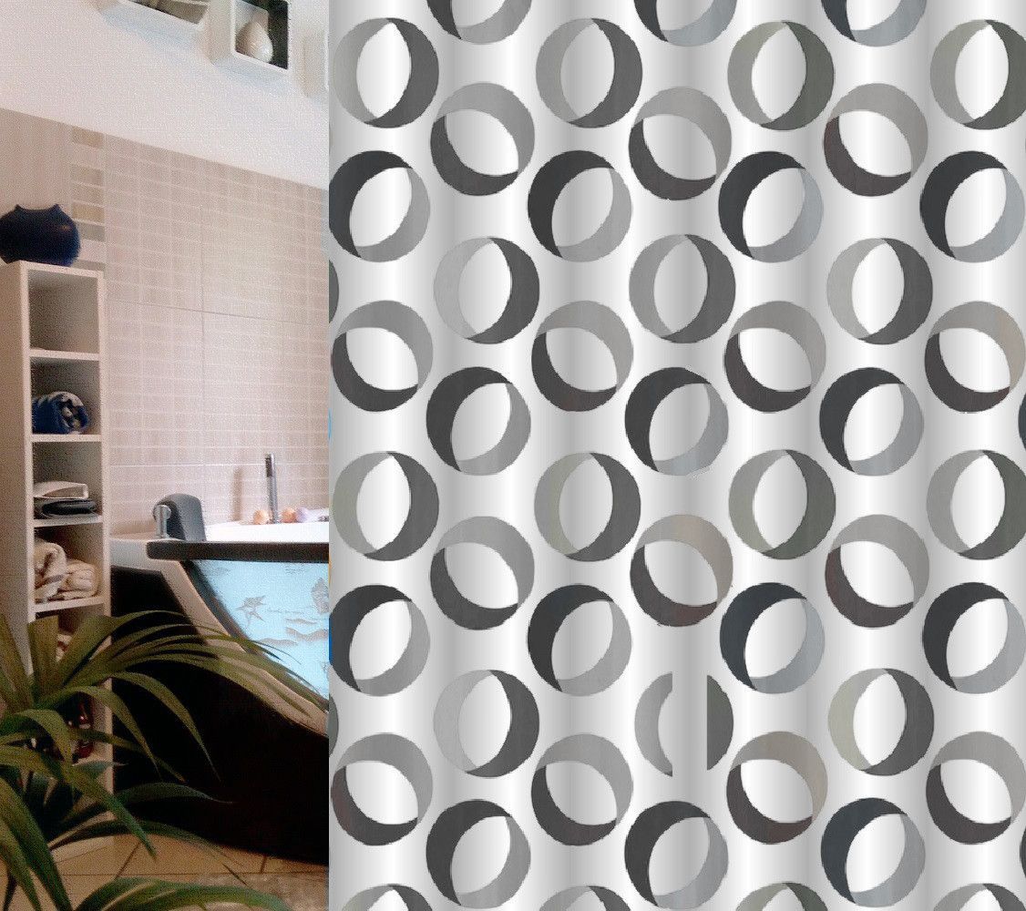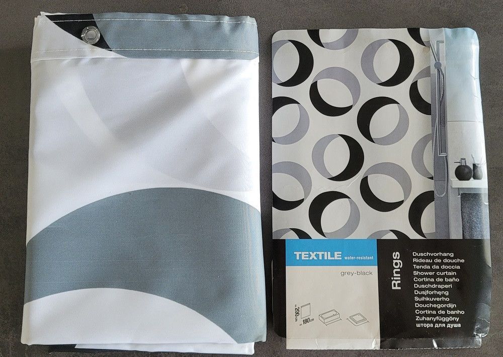 Achtung: Ohne Originalverpackung und können einige Lagerungsspüren erhalten!Reduziert von UVP Spirella Duschvorhang Rings grey-black 180 x 200cm. (Breite x Höhe). Aus hochwertigem gewebtem Textil (100% Polyester). Wasserabweisend imprägniert und gechintzt gem. DIN-Norm, bis 40°C Maschinenwashbar... Mehr